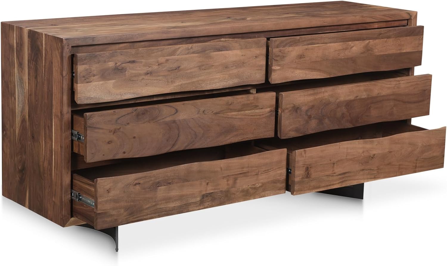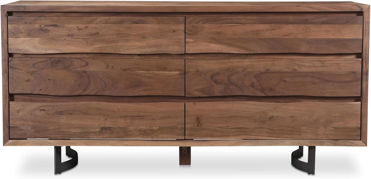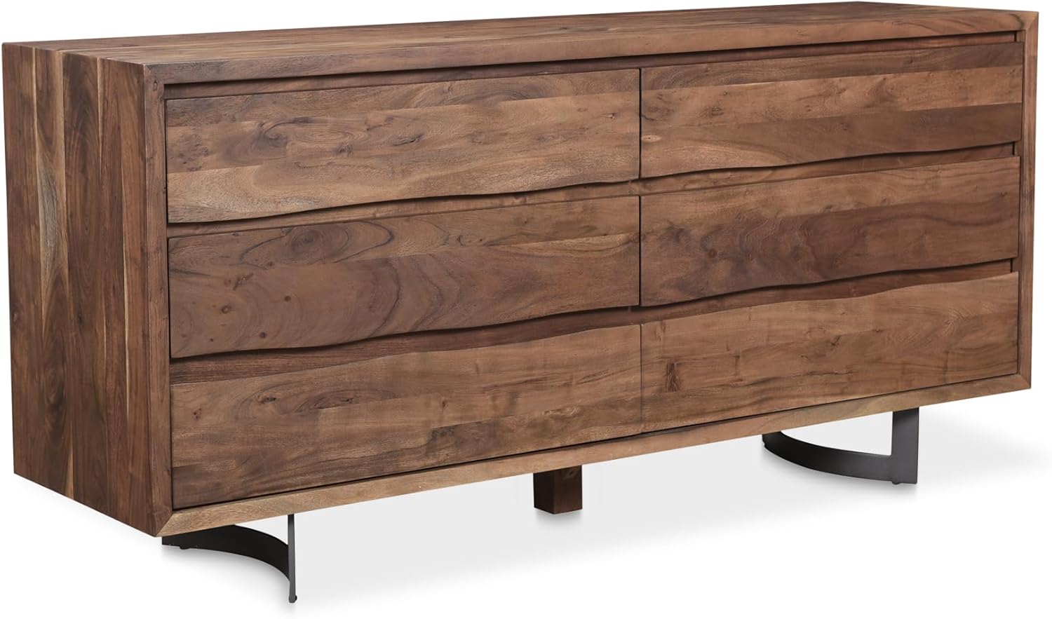 Ellis, Dresser, Industrial Solid Acacia Wood, 6 Drawers, Natural Stain