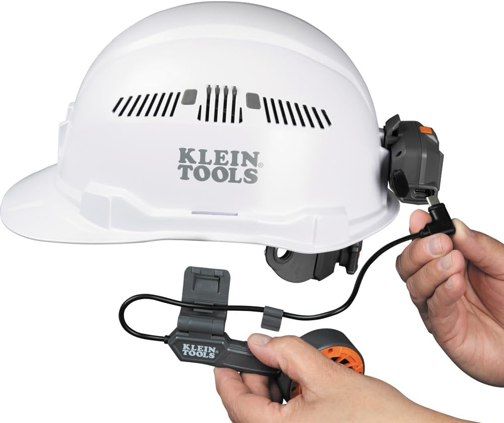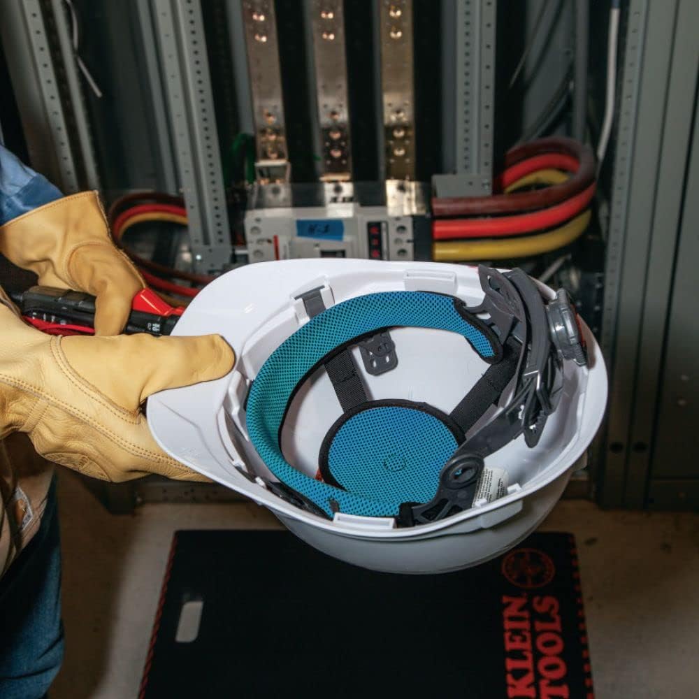 Klein Tools 60407RL Hard Hat, Rechargeable Headlamp, White & 60181 Cooling Helmet Liner, Under Hard Hat Cap with Mesh Fabric at Crown