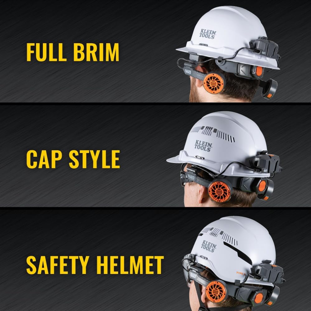 Klein Tools 60523 Dual Cooling Fan for Hard Hats and Safety Helmets, Lightweight, USB-C Rechargeable Fan, Cools Head, Neck, and Face