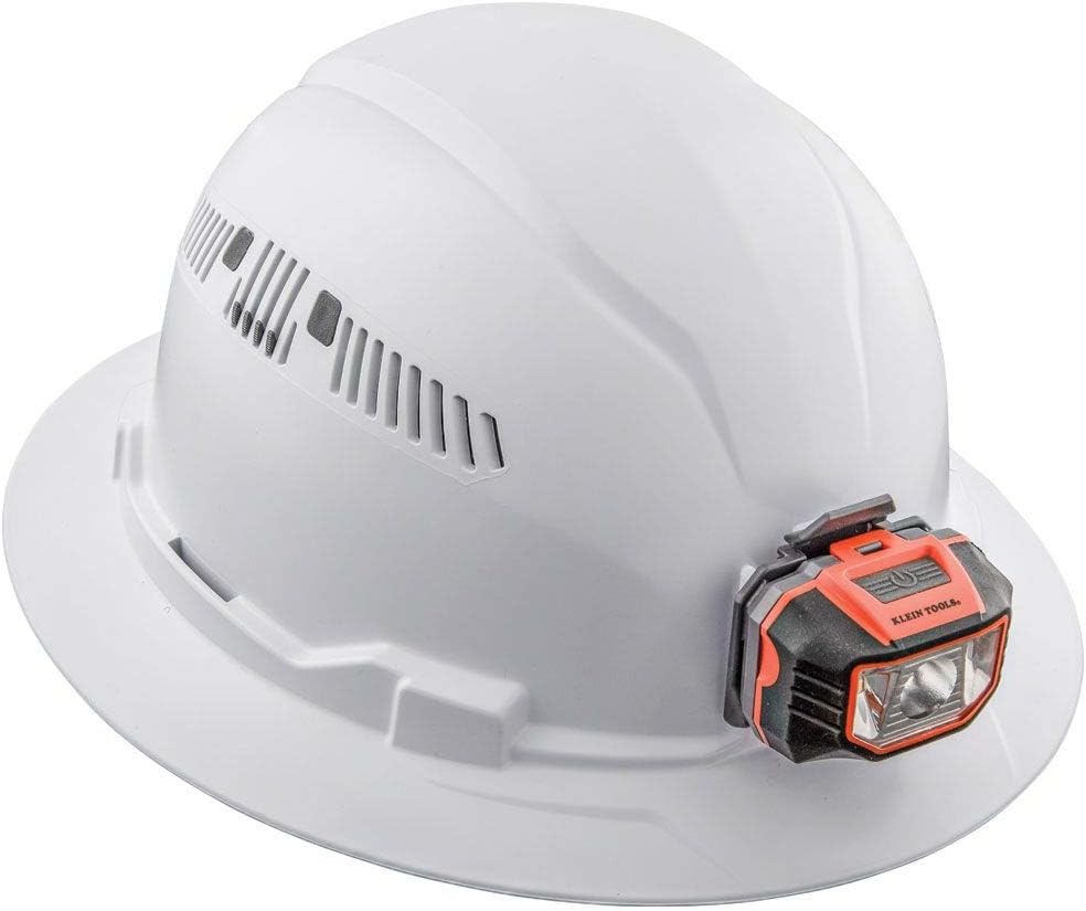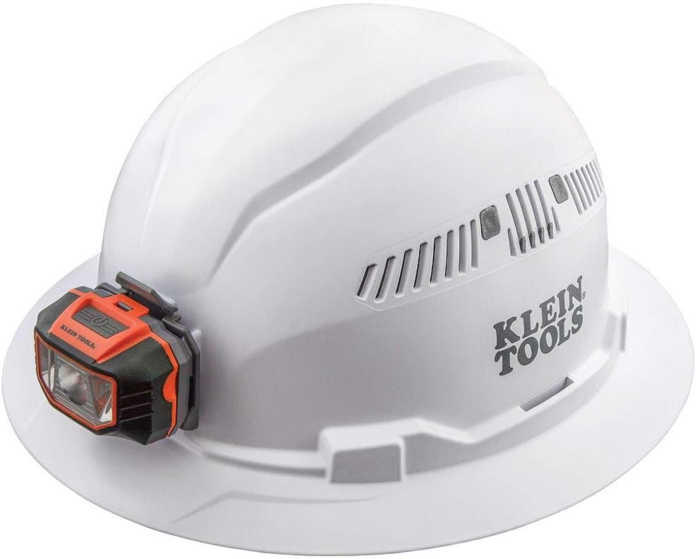 Klein Tools 80084 Hard Hat and Accessories Kit, Vented Full Brim Hard Hat, Headlamp, Sweat Band, Top Pad and Tinted Safety Glasses, 5-Piece