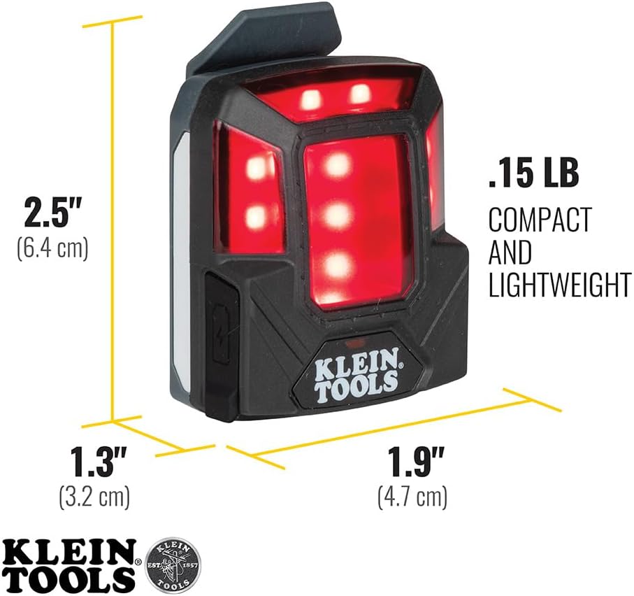 Klein Tools 56063 Rechargeable Safety Light with Magnet, Red, Mounts to Klein Hard Hats and Safety Helmets