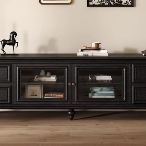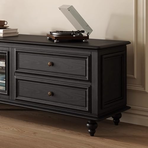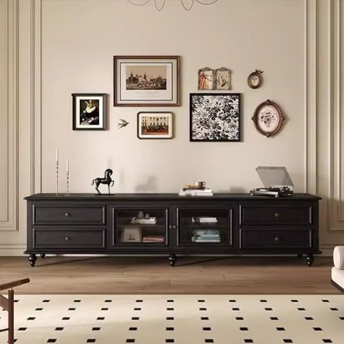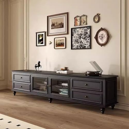 Tv Stand Tv Table Stand American Retro high-end Black Solid Wood TV Cabinet Bedroom Living Room Home Light Luxury high Style Floor-Standing TV Cabinet Tv Stands for Living Room(200X40X55CM)