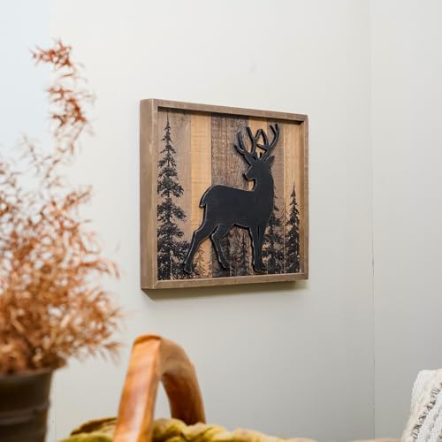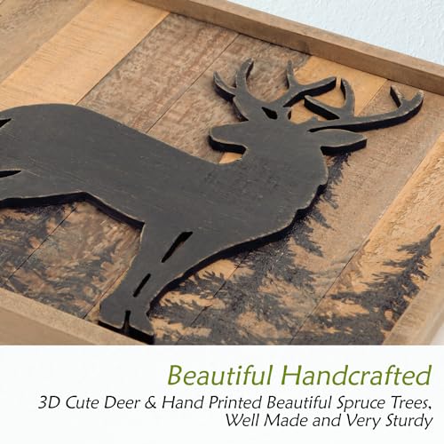 NIKKY HOME Cabin Wall Decor, 3D Deer Solid Wood Forest Mountain Woodland Wildlife Lodge Animal Picture Art Bathroom Decor, 16 x 12 Inches