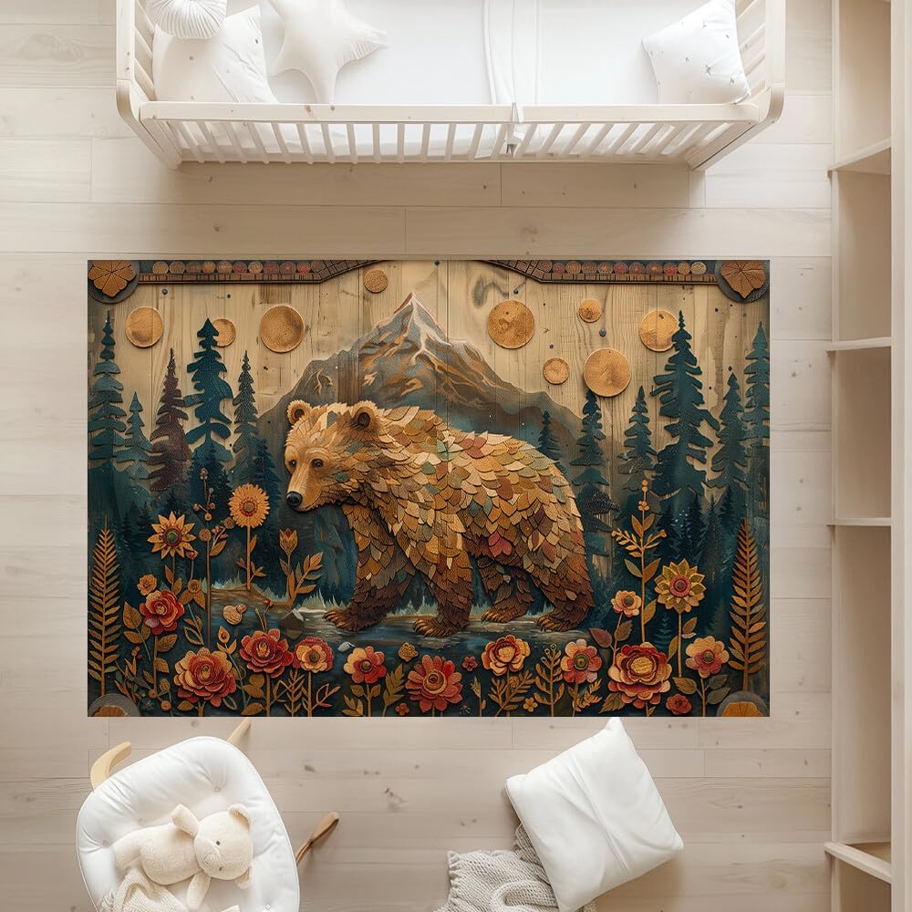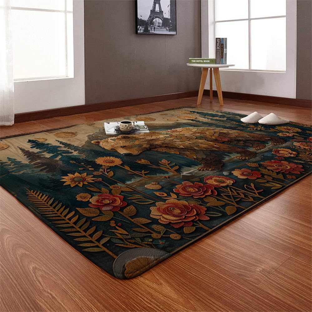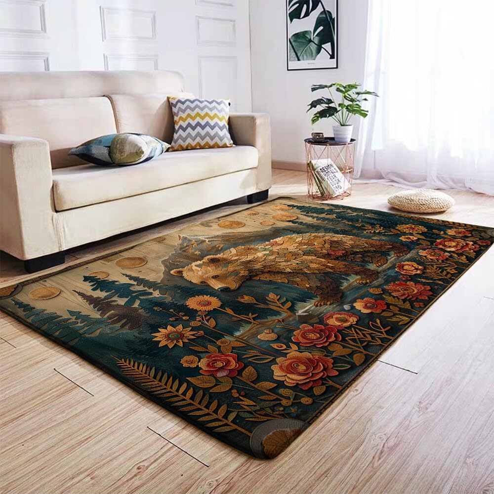 Bear Rug - Bear Rugs For Cabin - Bear Area Rug - Bear Rugs For Living Room - Animal Rug - Country Rug - Mountain Rug - Rustic Rugs For Living Room – Rustic Farmhouse Decor - size 3'x5' - 4'x6' - 5'x8'
