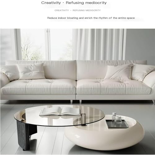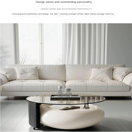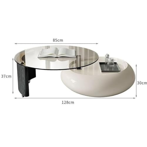 Rotating Coffee Table, Living Room Home Light Luxury High-End Artistic Round Creative Glass Coffee Table, Simple Home Dining Table,A