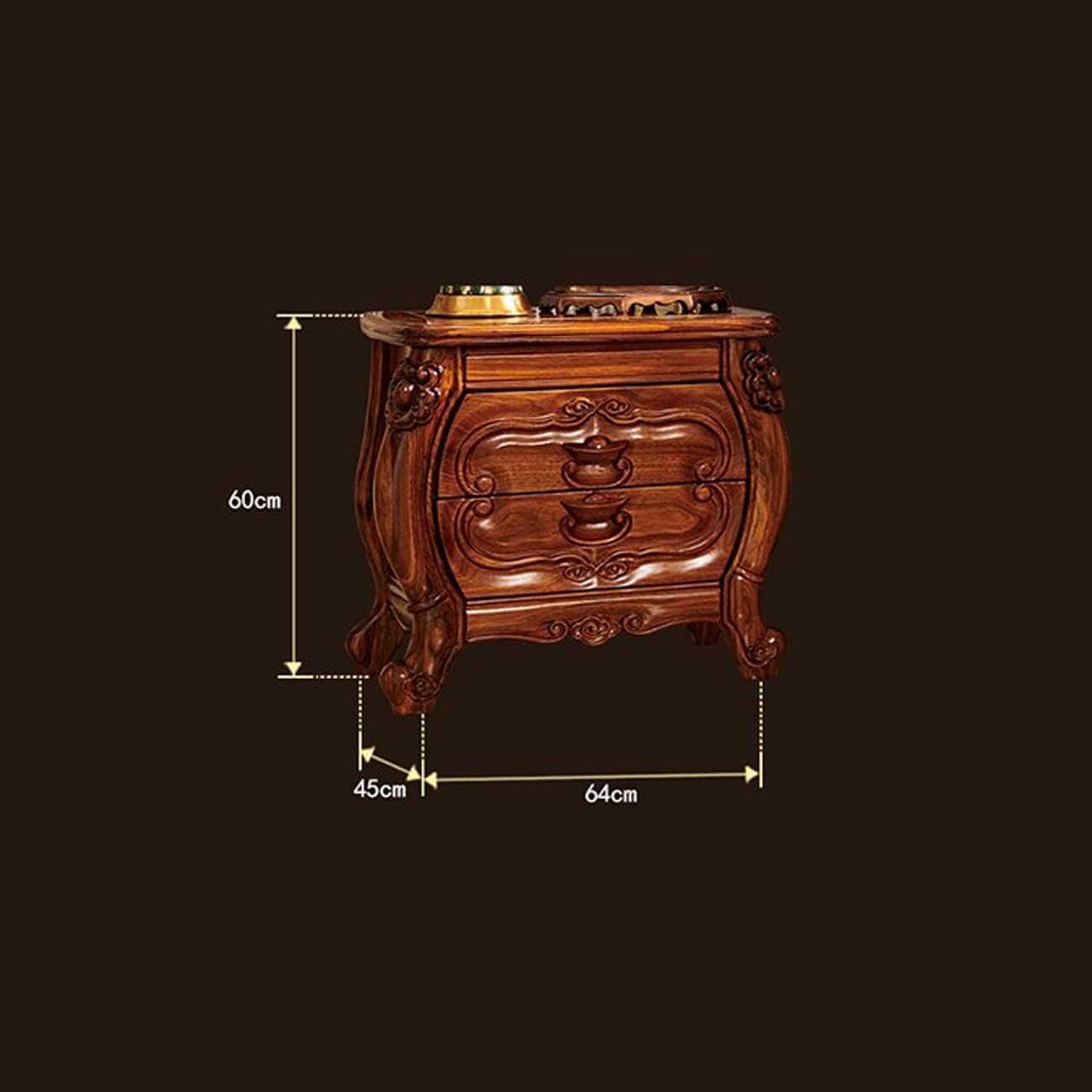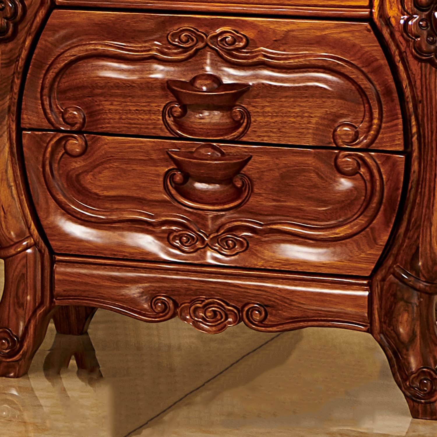 High-end Retro Nightstand, Luxury Solid Wood Bedroom Nightstands with 2 Drawer, Exquisite Carving Storage Cabinet, Bedside Tables Furniture for Villa Big House Bedroom