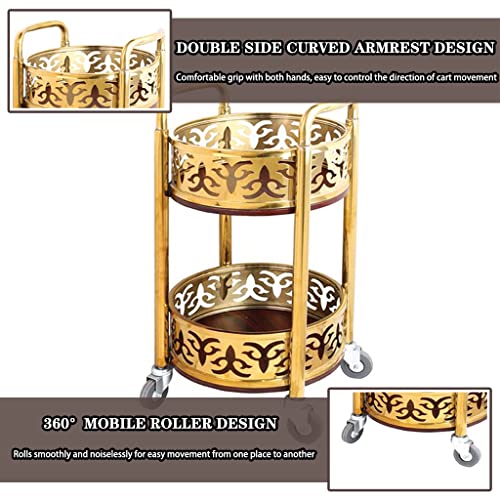 Bar Cart with Wheels High-end Restaurant Luxury Style Serving Cart,Portable Mobile Double Armrest Drink Cart,Banquet Service Equipment (Color: Gold,Size: 80 * 40cm)