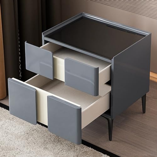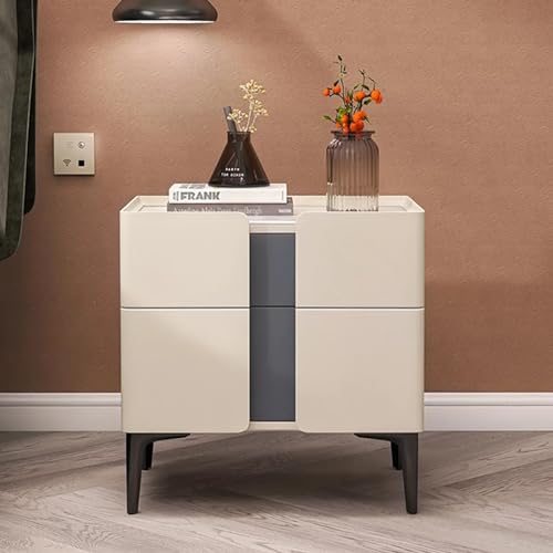 Nightstand,Solid Wood Nightstand,Modern White Painted - Simple, Minimalist, High-End Solid Wood Nightstand - Light Luxury Narrow Storage Cabinet for Bedroom