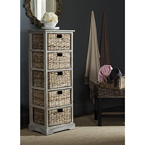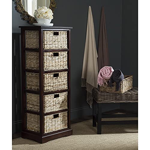 SAFAVIEH Home Collection Vedette Distressed Black 5-Drawer Wicker Basket Storage Tower (Fully Assembled)