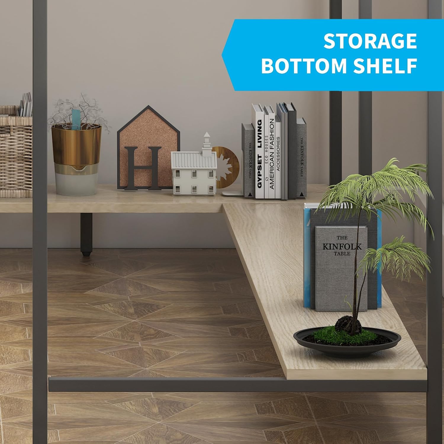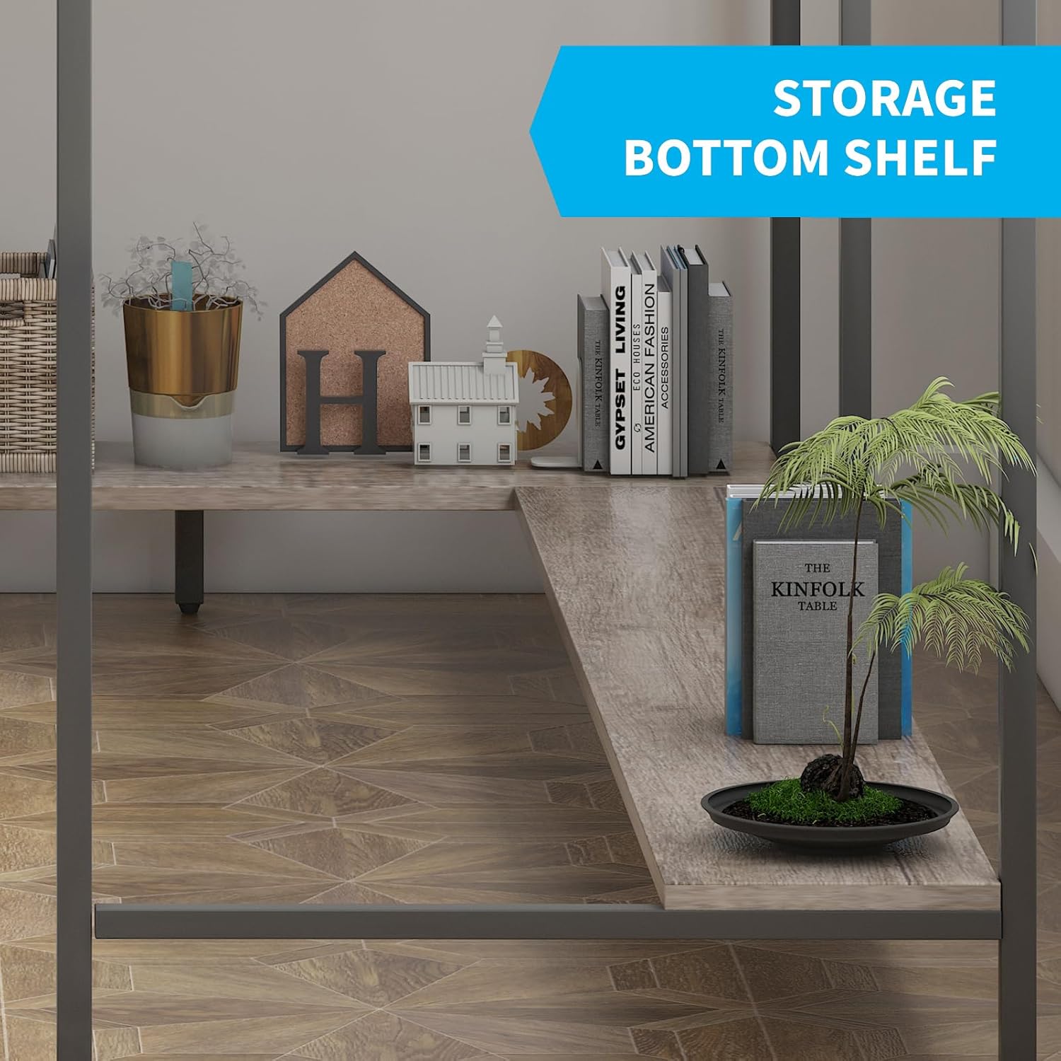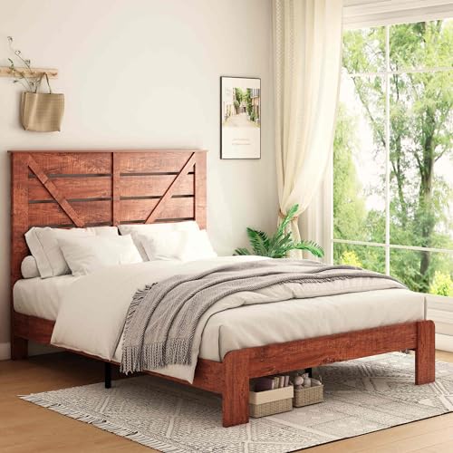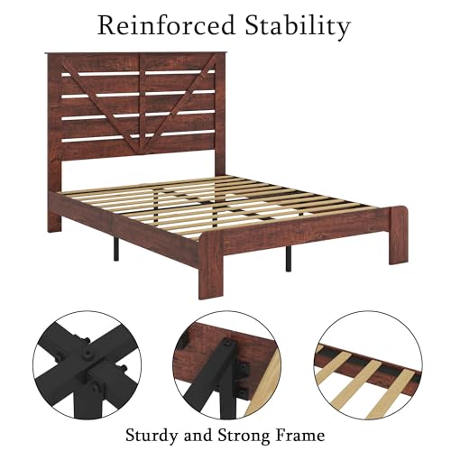 King Size Wood Platform Bed Frame with Industrial Style, Metal Frame, Noise-Free, No Box Spring Needed, Easy Assembly, Large Under-Bed Storage(Color:Queen)