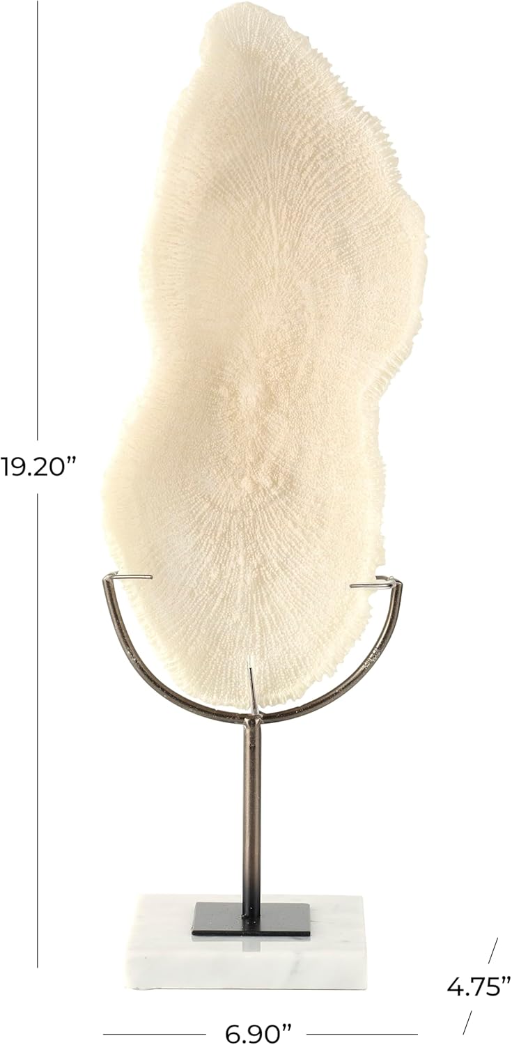 Deco 79 Polystone Coral Decorative Sculpture Abstract Textured Home Decor Statue with Gray Stand and Acrylic Base, Accent Figurine 7" x 5" x 19", Cream