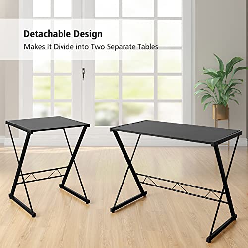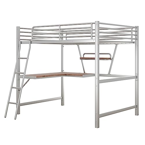 Twin Metal Loft Bed with L-Shaped Desk and Shelf, Heavy Duty Loft Bed Frame with Safety Full-Length Guardrails & Ladder, Twin Size Loft Bed for Kids, Teens, Adults, Black