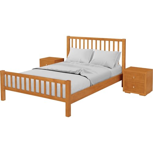Hampton Wooden Platform Bed with 2 Nightstands | Modern Low-Profile Bed with Full Slat Support System - No Box Spring Needed, Easy Assembly | Cherry, Queen