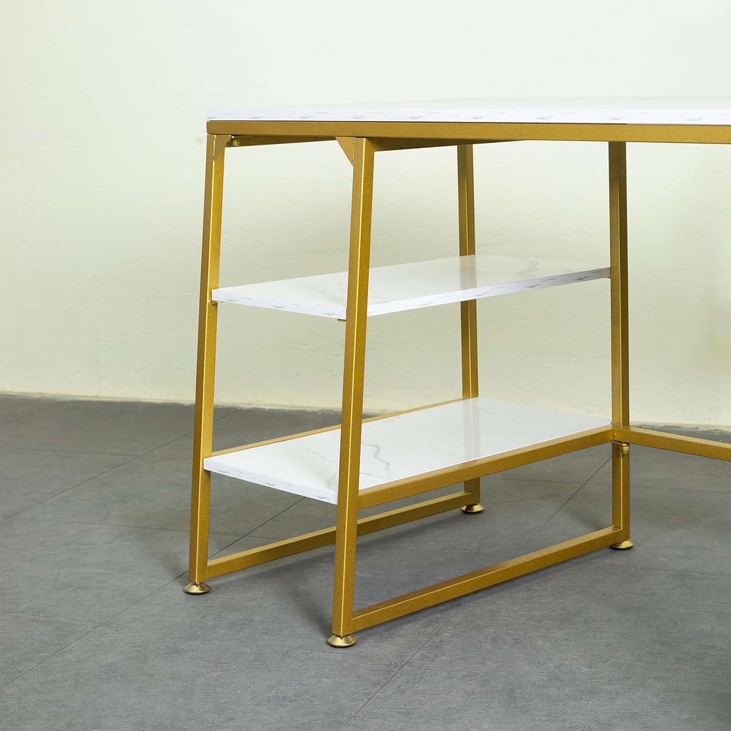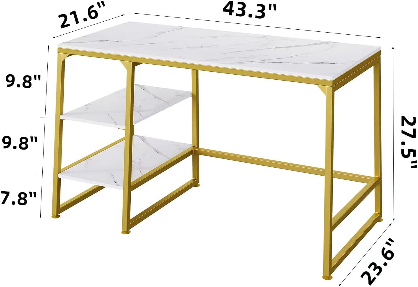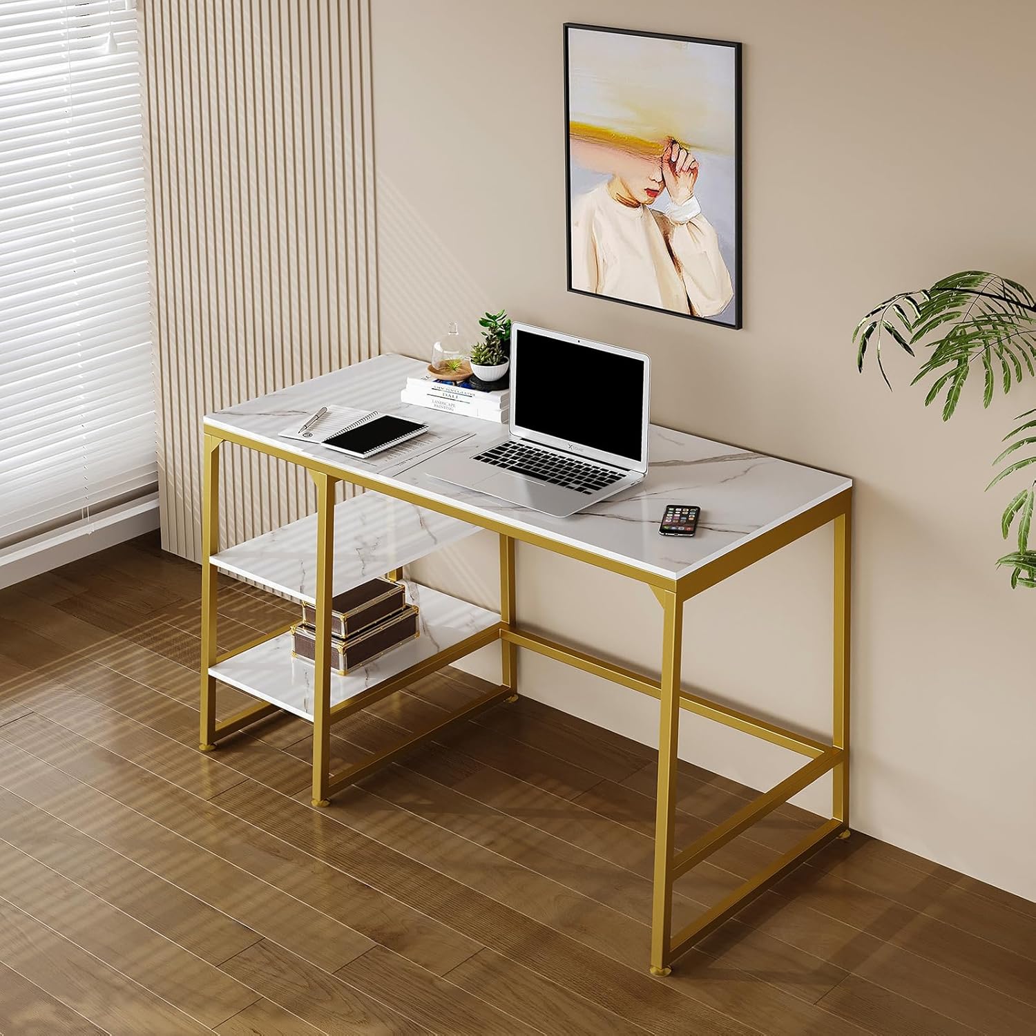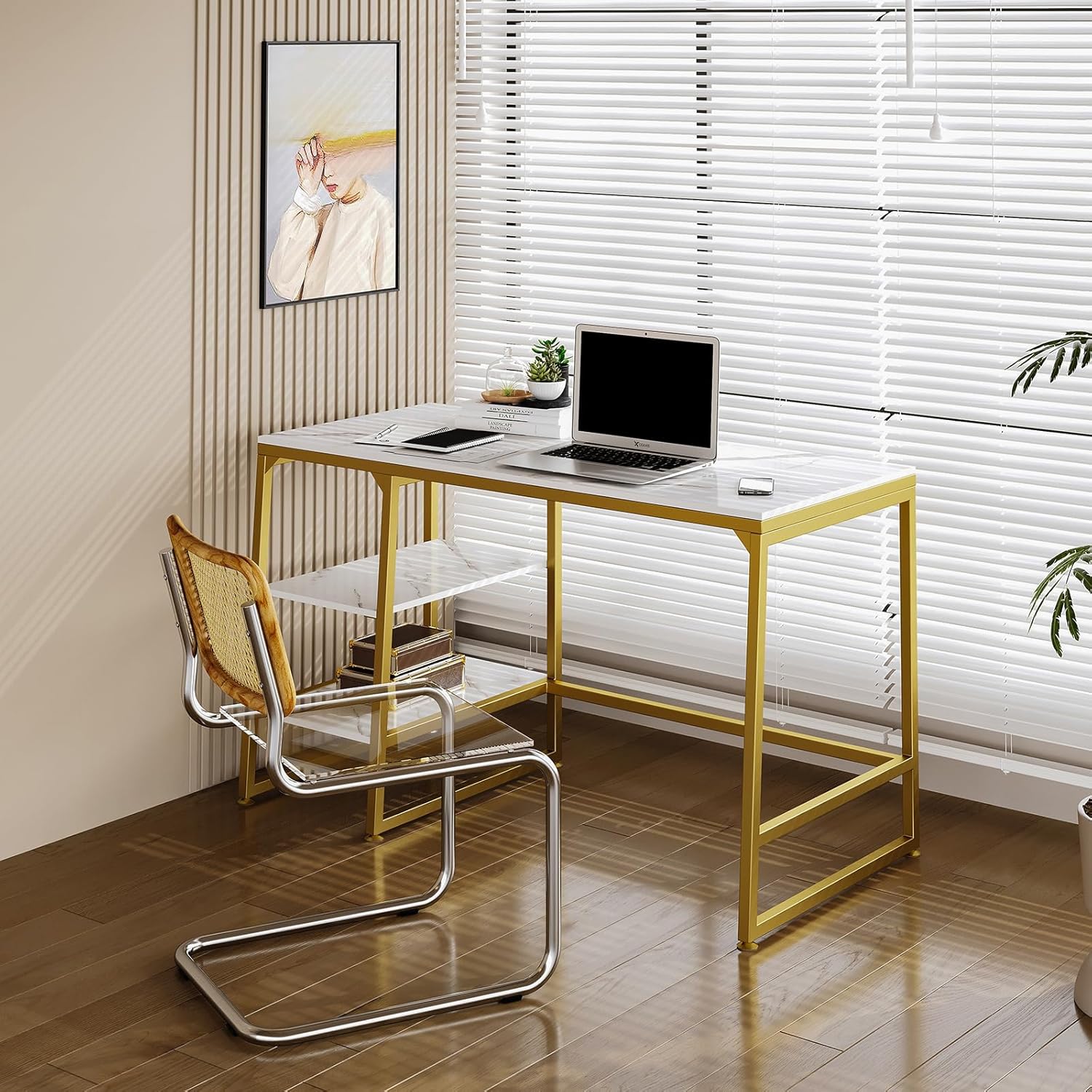 Computer Desk, Golden Modern Office Stand with Storage Rack,Large Executive Desk, Laptop Gaming Study Table, Home Office Furniture for Small Space Home Office