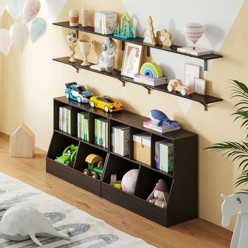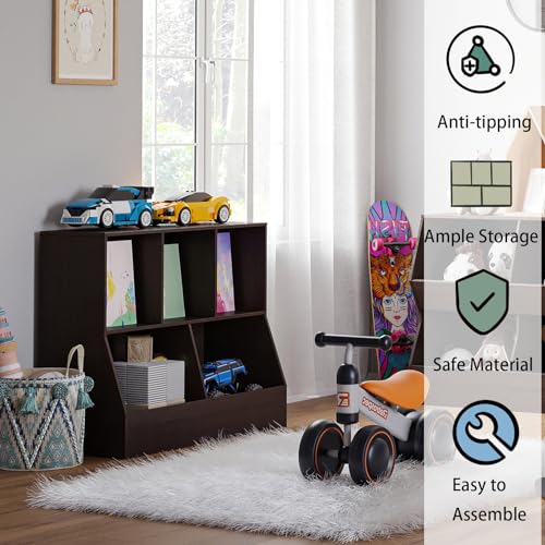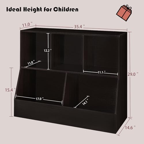 DINZI LVJ Toy Storage Organizer, Kids Bookshelf, Wood Toy Storage Cabinet, 5 Cubby Children Bookcase, Toddler Book Toy Shelf for Playroom, Bedroom, Nursery, Hallway, School, 39.4" Long, White