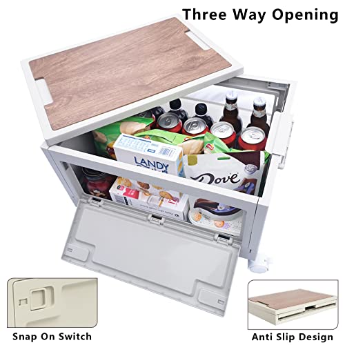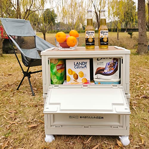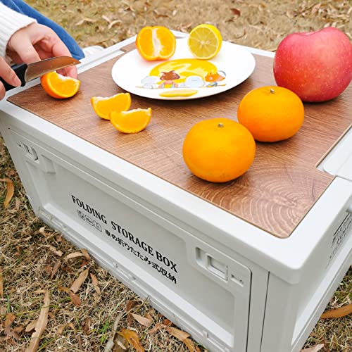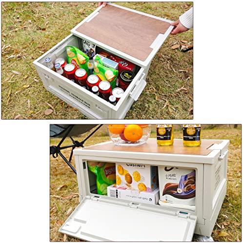 Folding Storage Box with Wooden Lids and Doors,47.5 Qt./45L Stackable Collapsible Closet Organizer,Outdoor Multifunctional Plastic Bins,Camping,Car Trunk,Home Sorting
