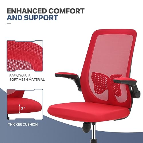 MoNiBloom Office Chair Work Chair Ergonomic Desk Chair Lumbar Support, Breathable Mesh Chair with Flip-up Arms Home Office Study Chair, Executive Office Task Chair 250 LBS Capacity, 2 Pack, Red