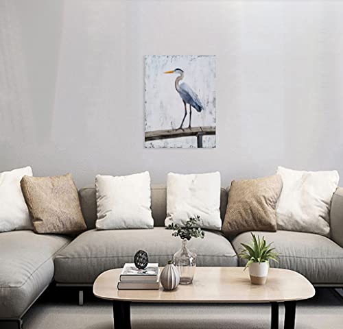 RFDEPOT ARTS Coastal Bird Wall Art with Textured Rustic Animal Oil Paintings Abstract Grey and White Canvas Pictures Big Farmhouse Artwork for Living Room Bedroom Bathroom Decor
