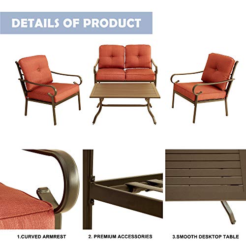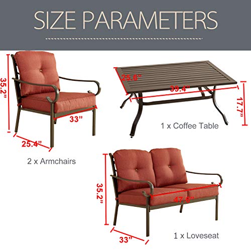 LOKATSE HOME Patio Cushioned Furniture Outdoor Bistro Loveseat, 2 Single Sofa Chairs, 1 Coffee Table, 4 Piece Conversation Set, Red