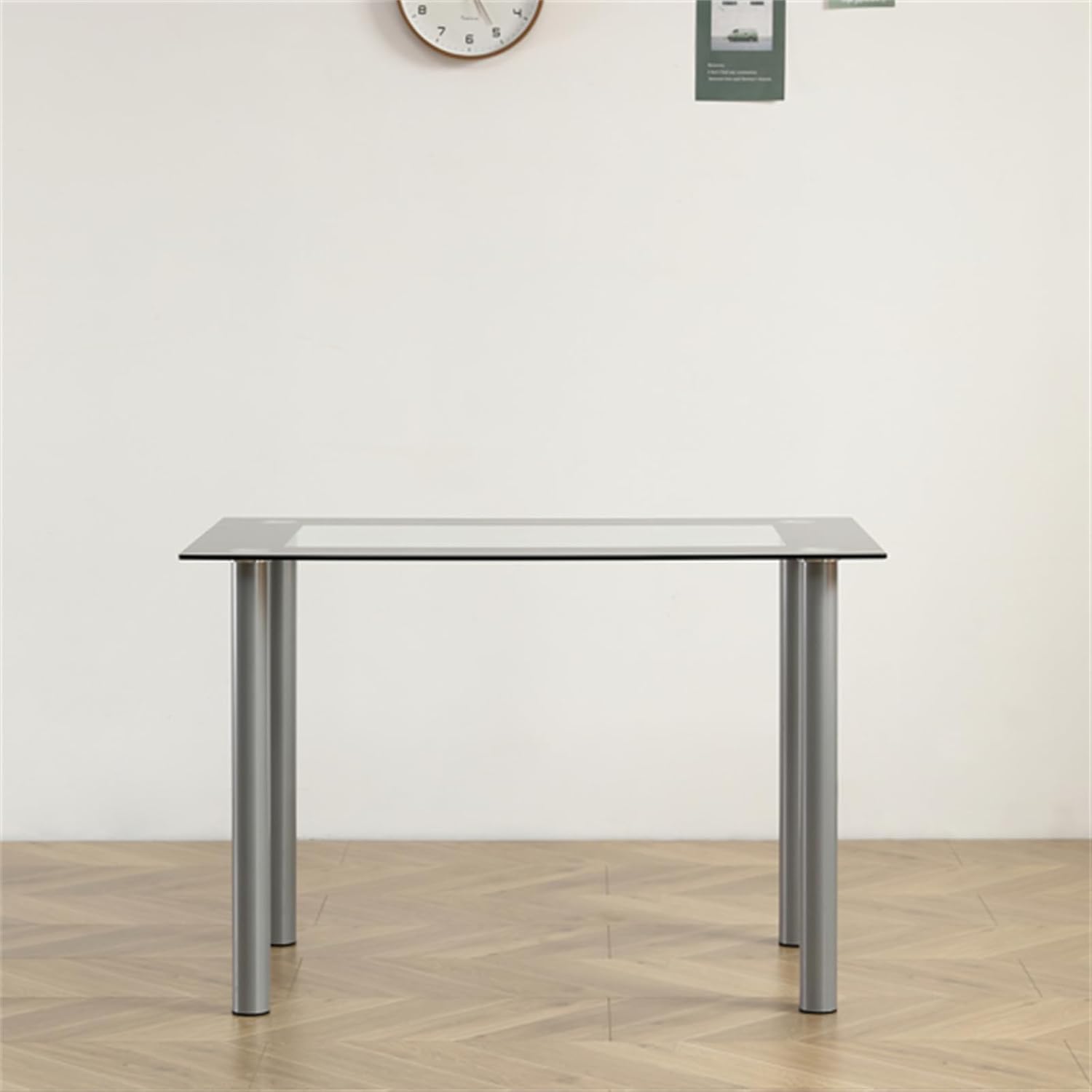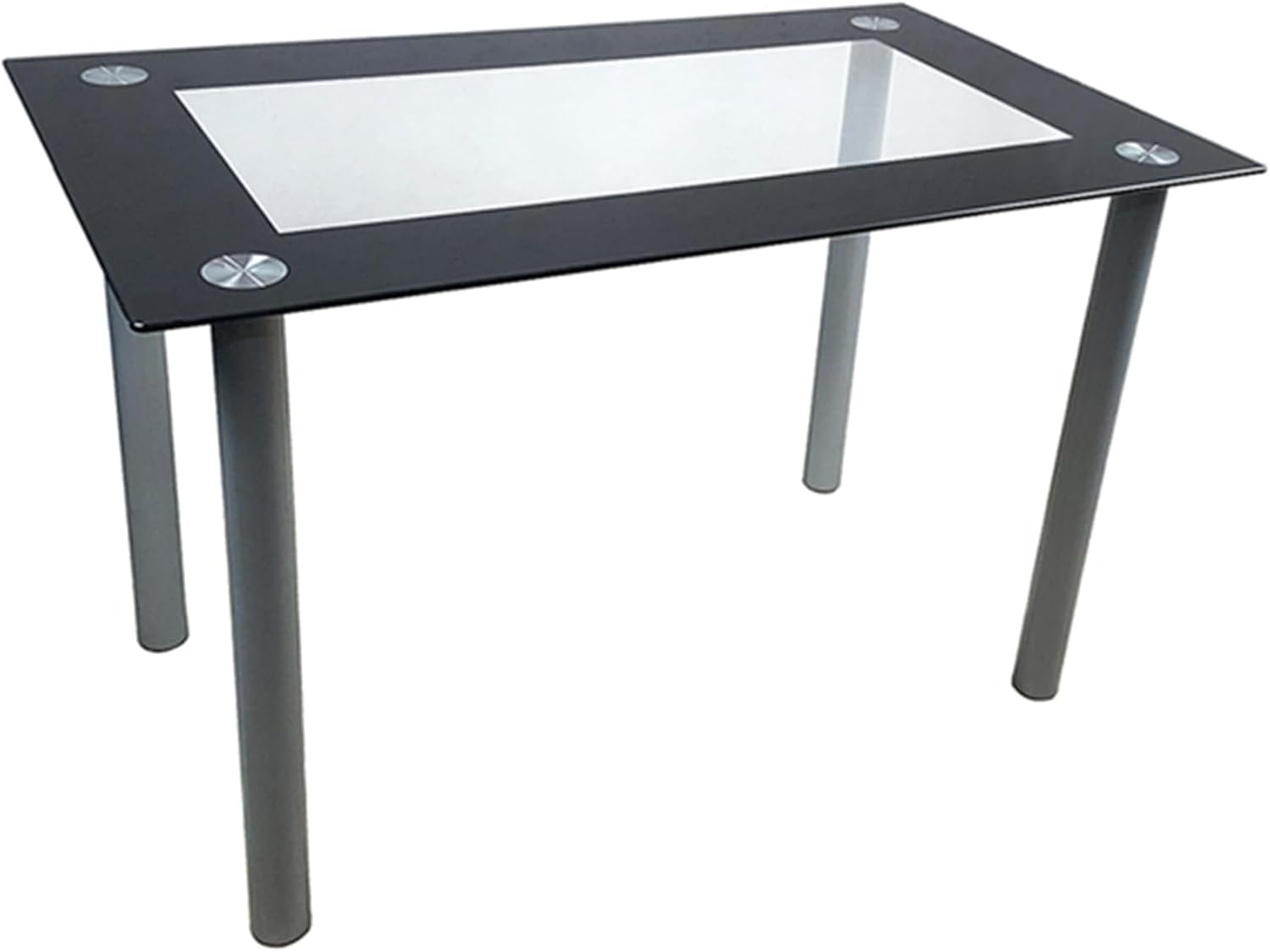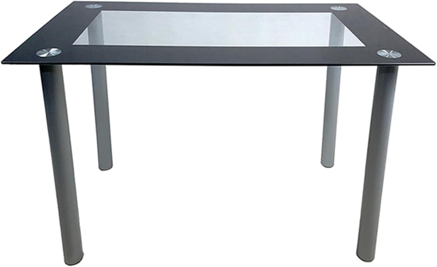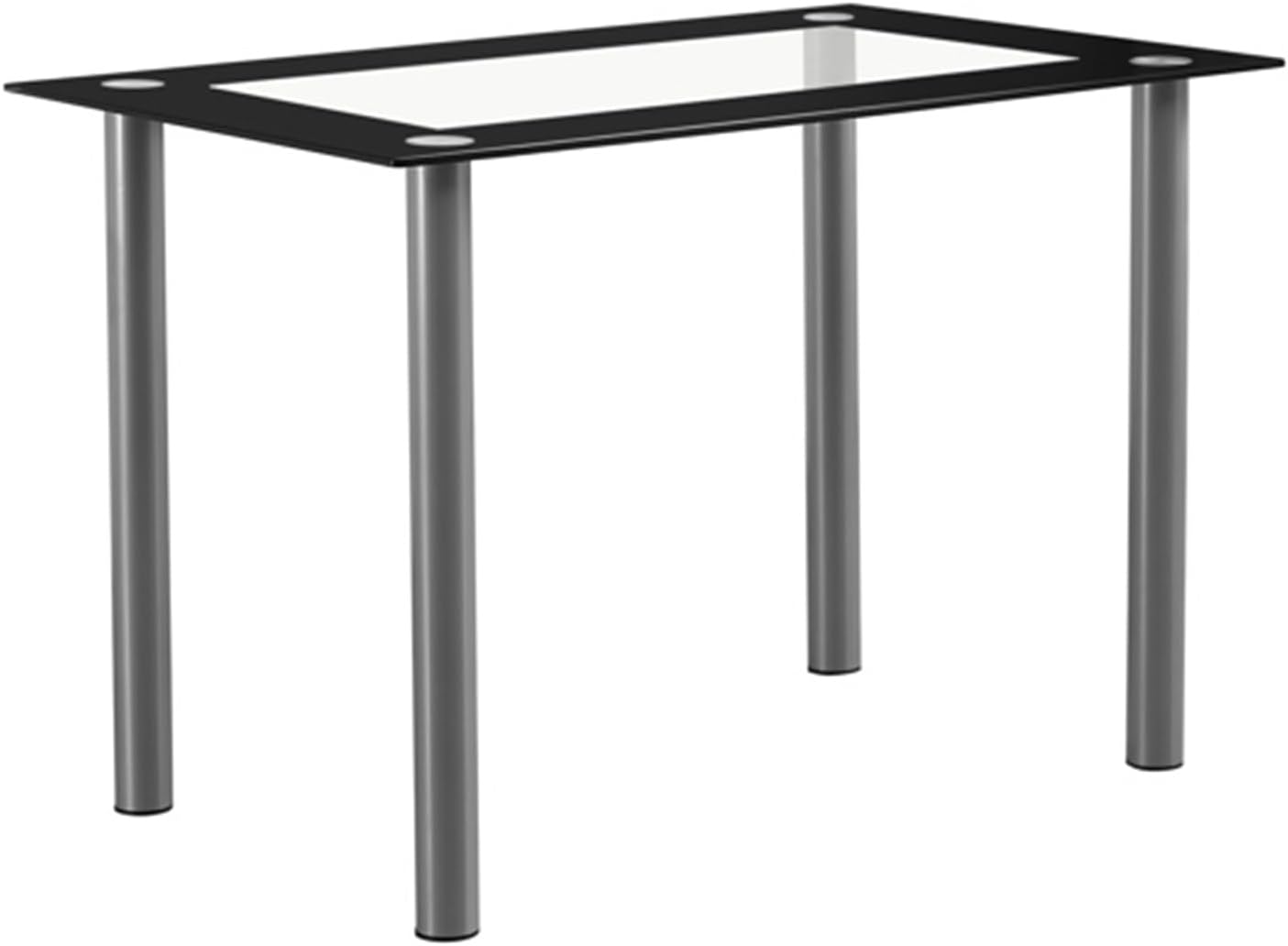 Simple Rectangular Cylindrical Legs Dining Table 4-Seater Tempered Glass Stainless Steel Black Edging Clear Glass 110 * 70 * 75cm