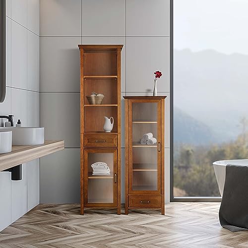 Teamson Home Newport Linen Tower with 3 Open Shelf 1 Drawer and 1 Door - White