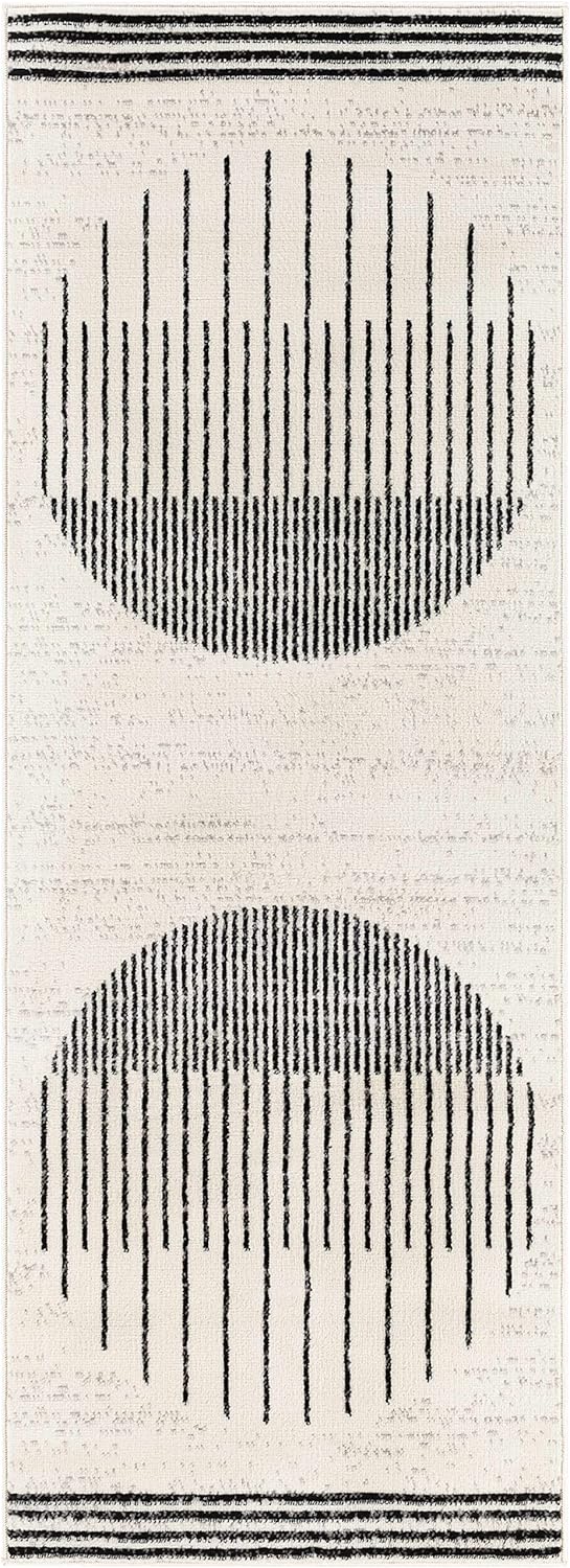 Hauteloom Angus Contemporary Bedroom Living Room Farmhouse Area Rug - Art Deco Boho Carpet - Mid Century Round Southwestern - Native American - Black, Grey, Off White, Beige - 6'7" x 9'