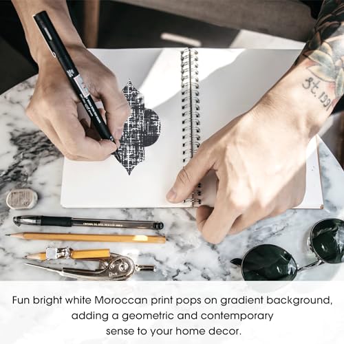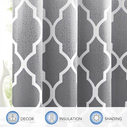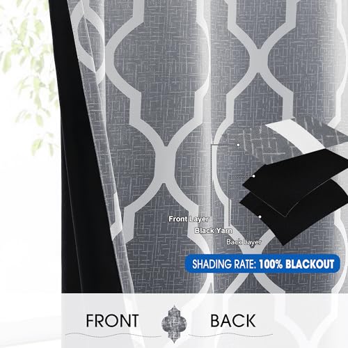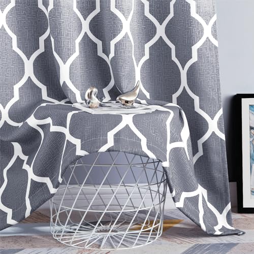 Metro Parlor Ombre Full Blackout Curtains 84 Inches Long 2 Panels for Living Room Bedroom Grey White Moroccan Geo Patterned Room Darkening Thermal Insulated Grommet Top Window Treatment Drapes,52x84