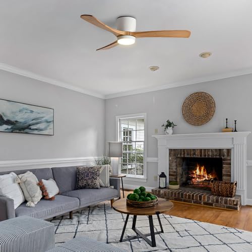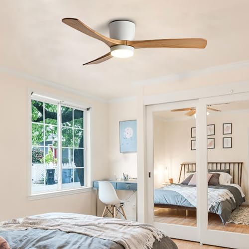 36in Quiet Ceiling Fans with Light 12W LED Nordic Ceiling Fan Lights Living Room Bedroom Remote Ceiling Lighs Fan Lighting 6 Gear Wind Speed Grey Ceiling Fan Light Wooden Fan Blades