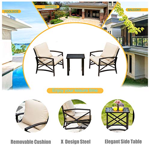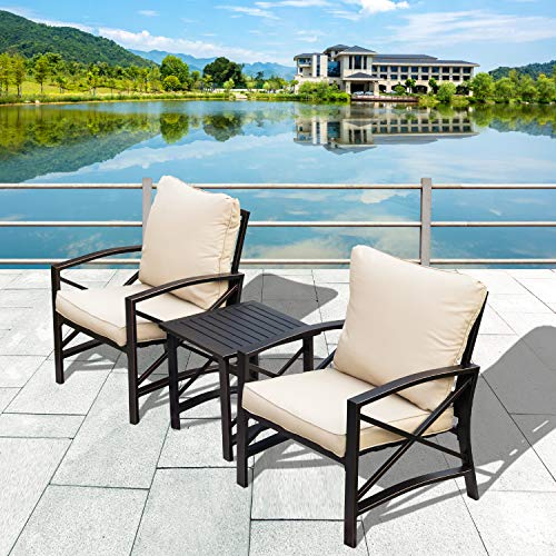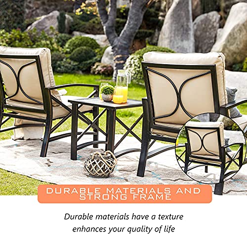 LOKATSE HOME 5Pcs Patio Furniture Conversation Bistro Loveseat and 2 Coffee Table, 5 pcs Chair Set, Blue