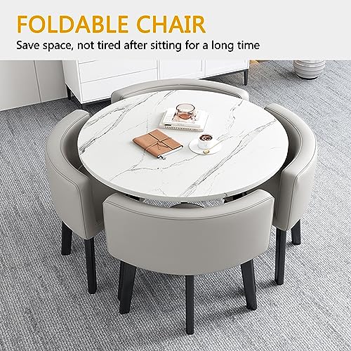 Marble Texture Round Dining Table Set Space Saving Round Dining Table Set 4 Seater Coffee Table Round Table for Dining Room and Kitchen with Recessed Rest, 1, Puleatherfabric