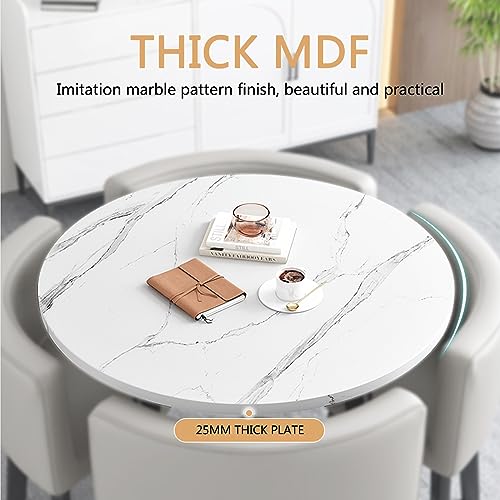 Marble Texture Round Dining Table Set Space Saving Round Dining Table Set 4 Seater Coffee Table Round Table for Dining Room and Kitchen with Recessed Rest