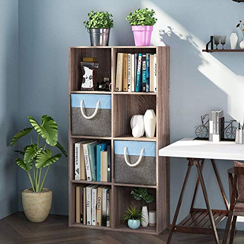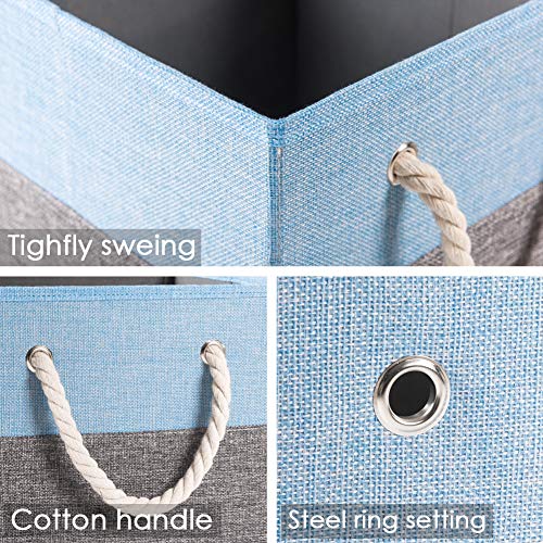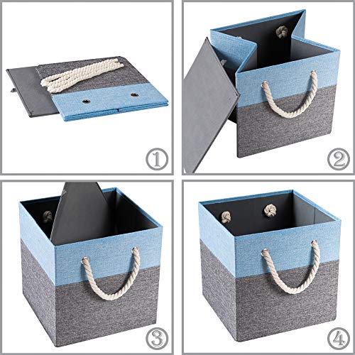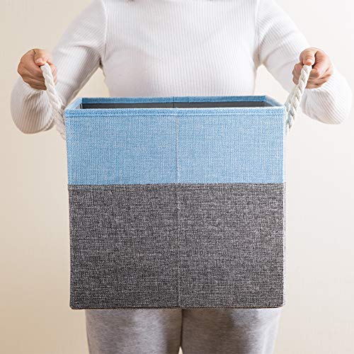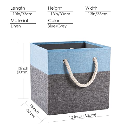 PRANDOM Large Foldable Cube Storage Bins 13x13 inch [4-Pack] Fabric Linen Storage Baskets Cubes Drawer with Cotton Handles Organizer for Shelves Nursery Closet Bedroom White and Grey