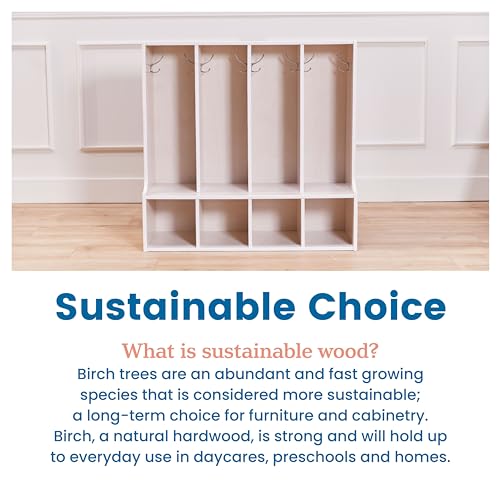 ECR4Kids Birch Streamline 4-Section Toddler Coat Locker, Natural