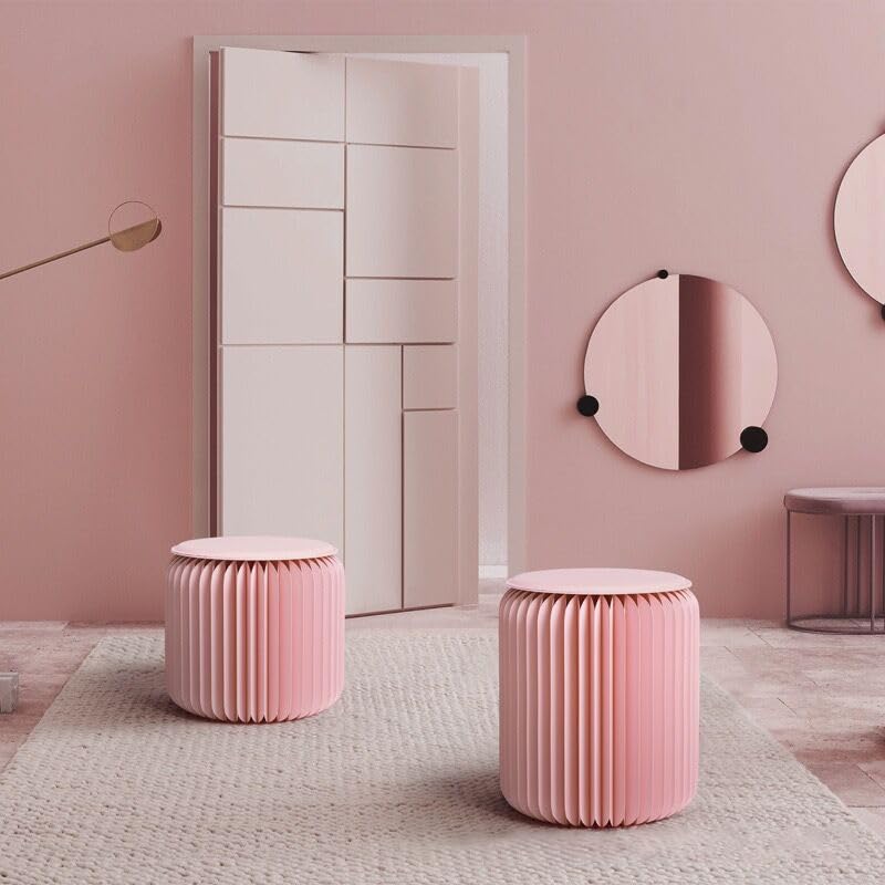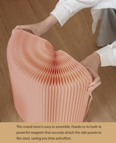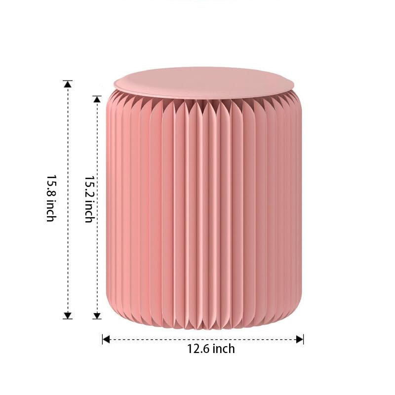Home Furniture Modern Design Accordion Portable Folding Paper Stool Kraft Paper Relaxing Multifunction Round Foot Stool Side table-Fashion Paper Design Ideal for School Living Dining Room (Pink)