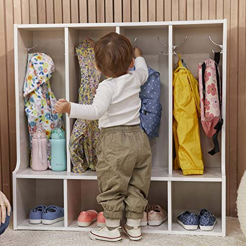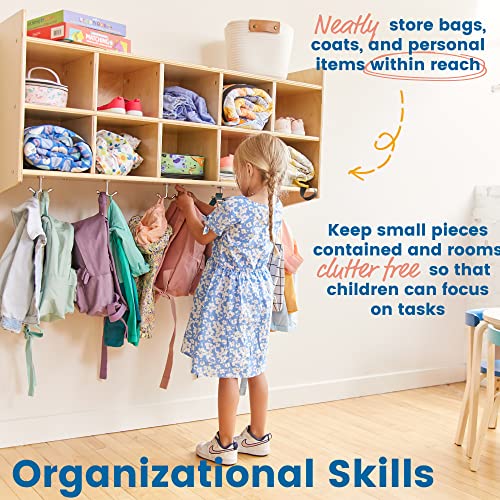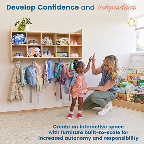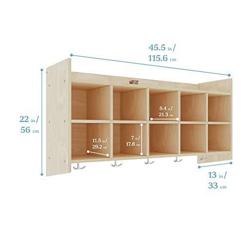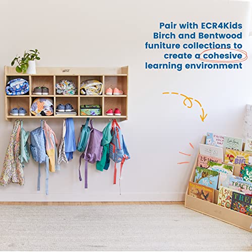ECR4Kids 10-Section Hanging Coat Locker with Shelf , Classroom Storage, Natural