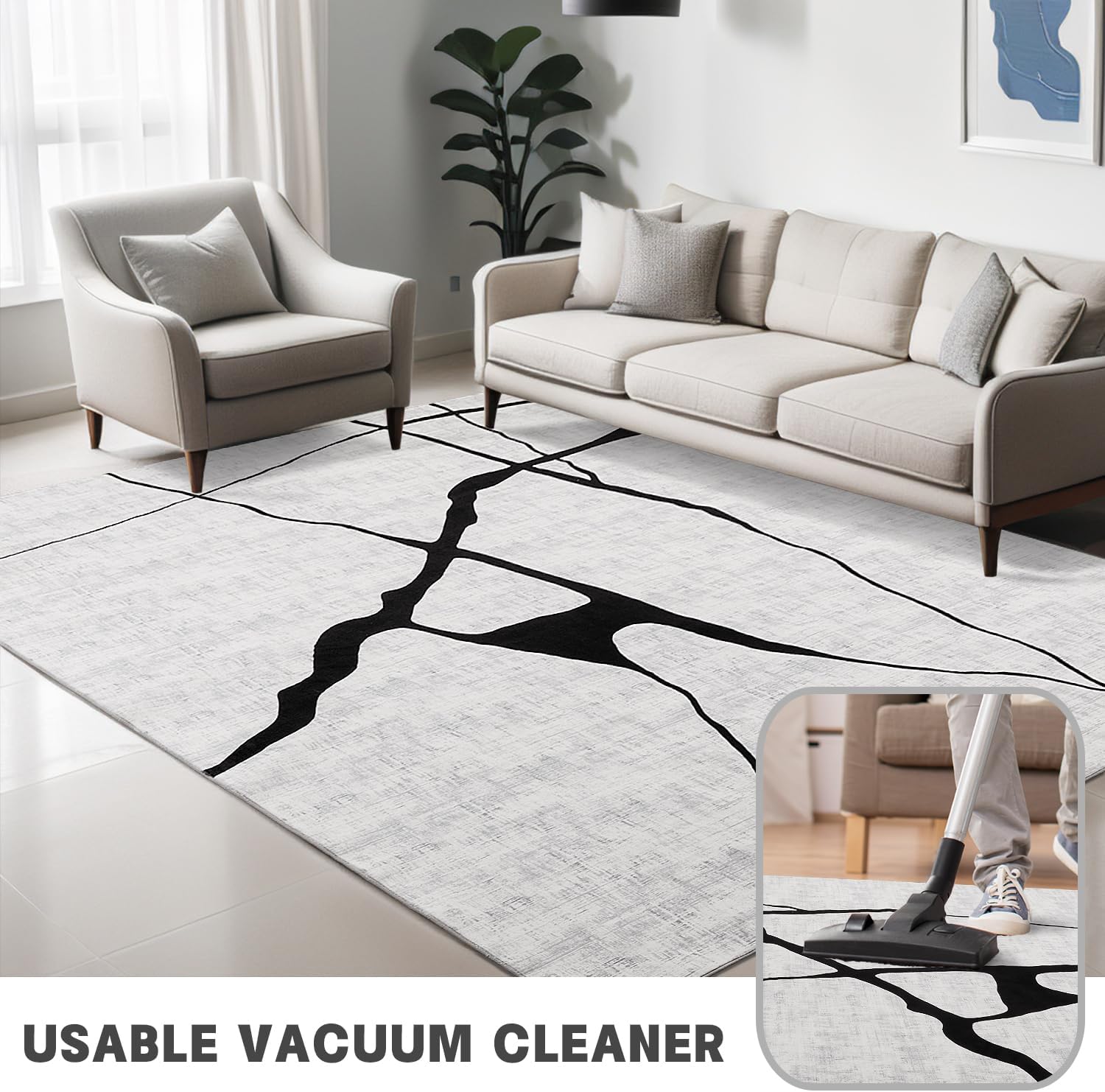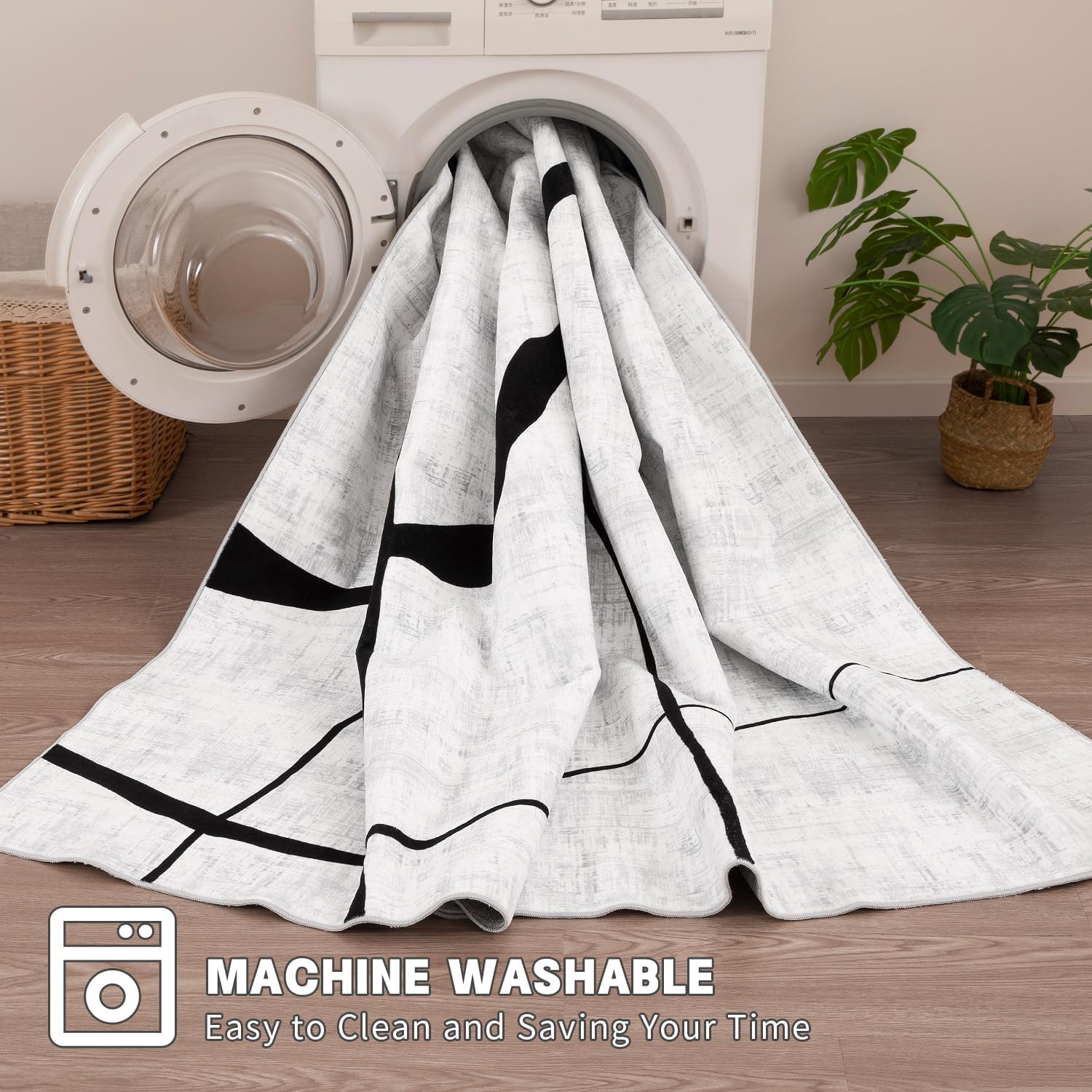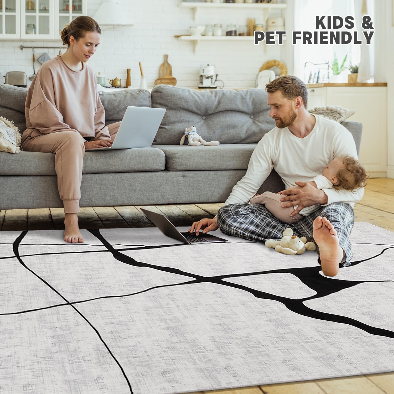 YIHOUSE Modern Area Rugs for Living Room, Washable Black and White Rug 8 x 10, Soft Ultra-Thin Nonslip Contemporary Abstract Rug for Kitchen Bedroom Office Playroom Nursery, Minimalist Stripe Grey