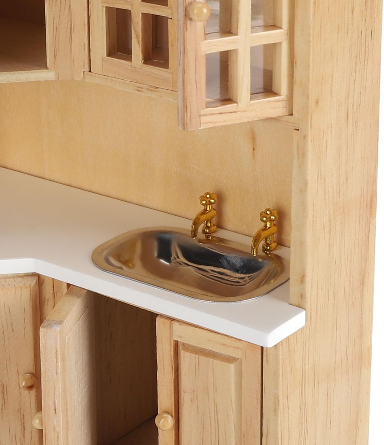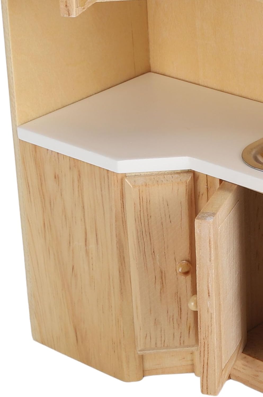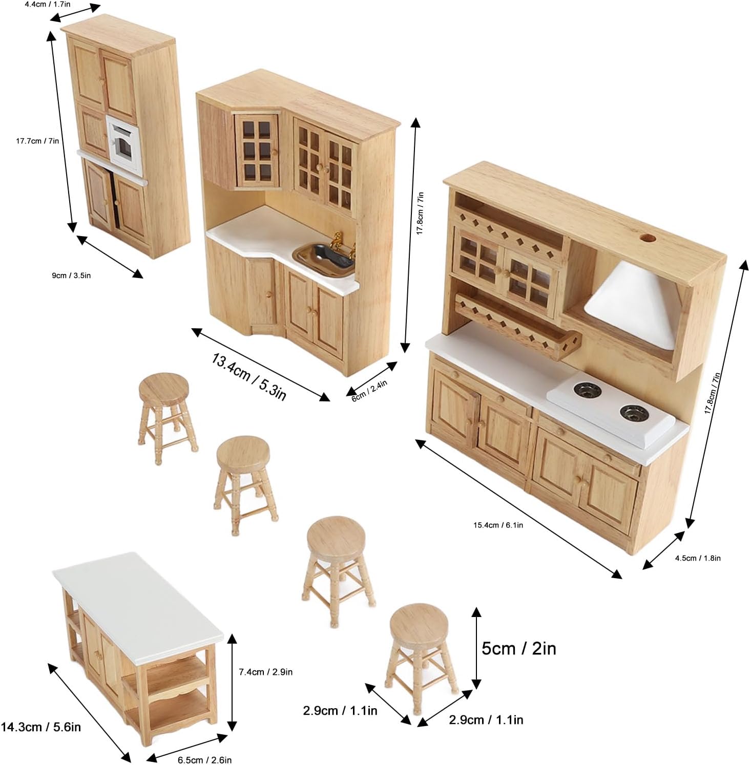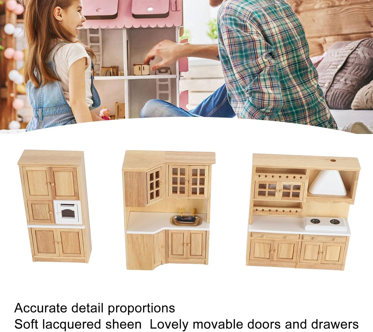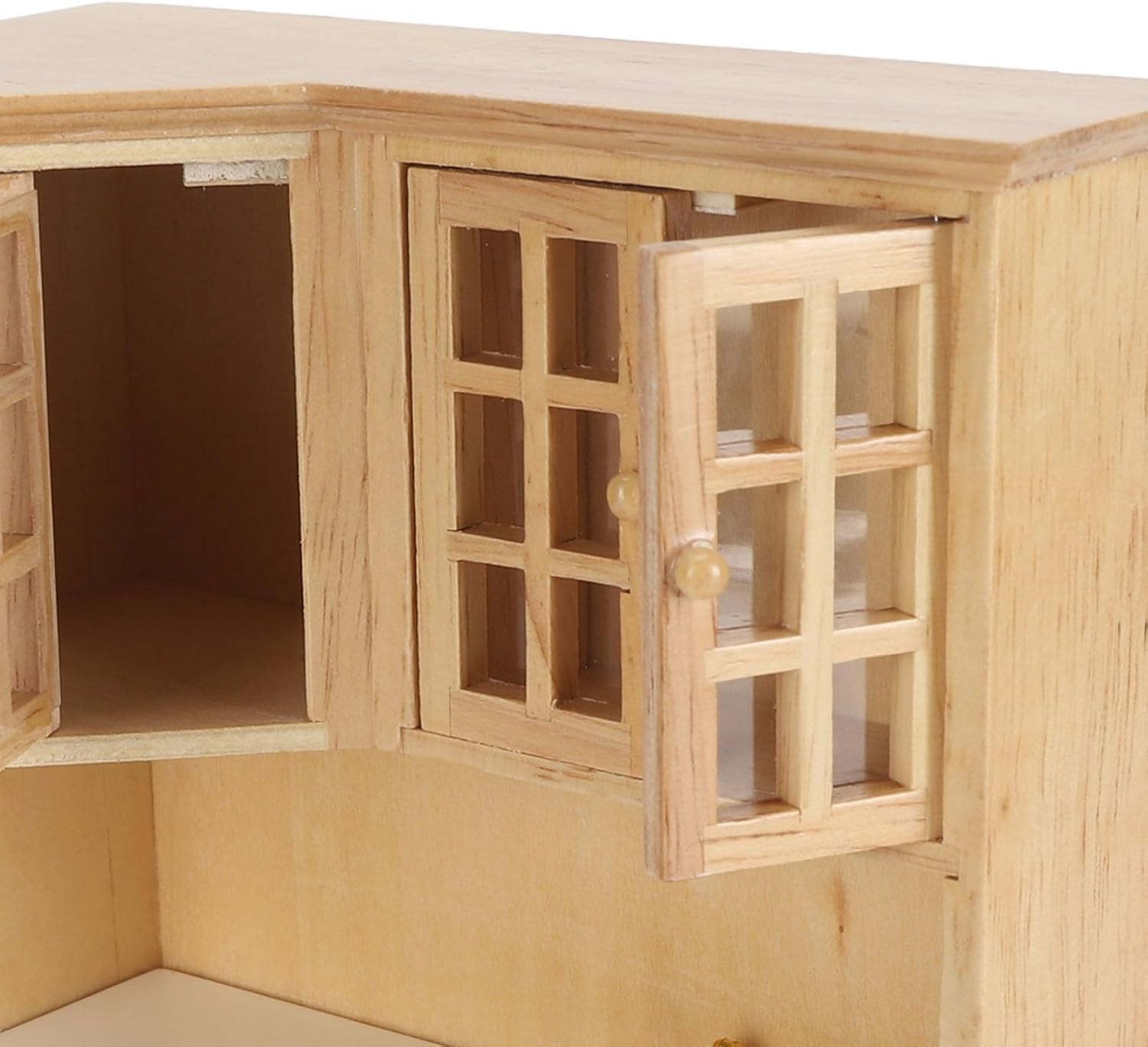 Miniature Dollhouse Kitchen Cabinet Furniture Set, Birch Wood Material, Provides Play Experience