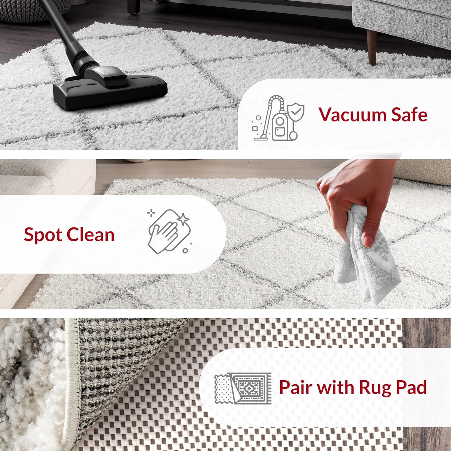 nuLOOM Tess Moroccan Shag Area Rug - 4x6 Shag Area Rug Modern/Contemporary White/Grey Rugs for Living Room Bedroom Dining Room Nursery
