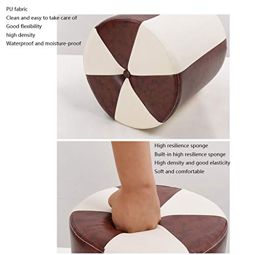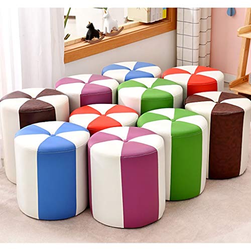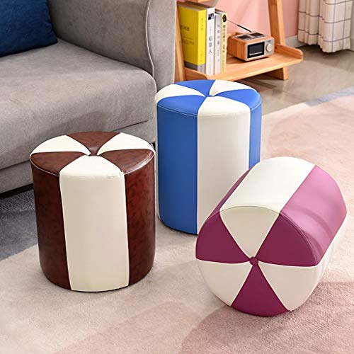 Foot Stools Footrest PU Leather Waterproof Footstool Fashionable Home Round Stool Living Room Tea Table Sofa Stool Small Stool Furniture (Color : Blue+White, Size : Large)