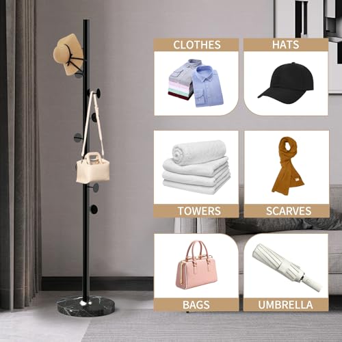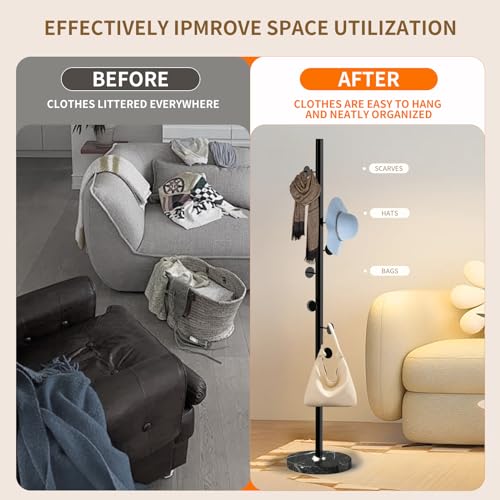 Wood Coat Rack Stand, Wooden Coat Rack Freestanding with Sturdy Round Base, Coat Racks with 14 Hooks, Natural Birch Wood Entryway Coat Hall Tree Hanger Stand