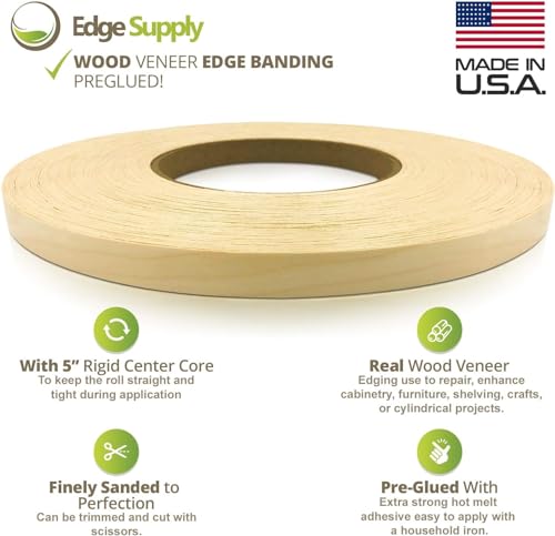 Edge Supply Birch 1 inch X 50 ft Roll of Plywood Edge Banding – Pre-glued Real Wood Veneer Edging – Flexible Veneer Edging – Easy Application Iron-on Edge Banding for Furniture Restoration