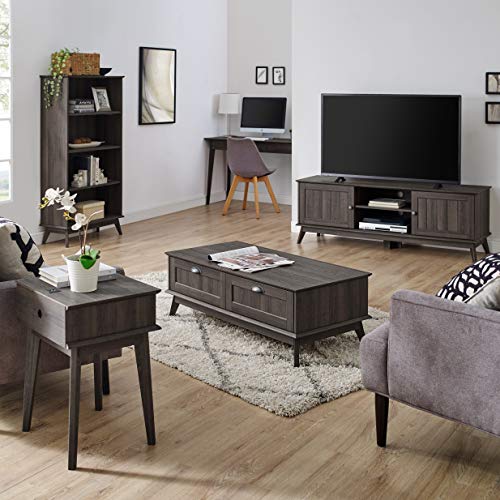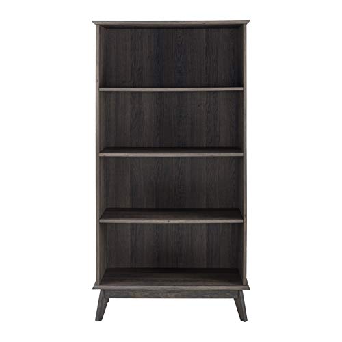 Newport Series Wooden Tall Modern 5 Tier Bookcase Book Shelf Media Storage Organizer | Sturdy and Stylish | Easy Assembly | Smoke Oak Wood Look Accent Living Room Home Office Furniture