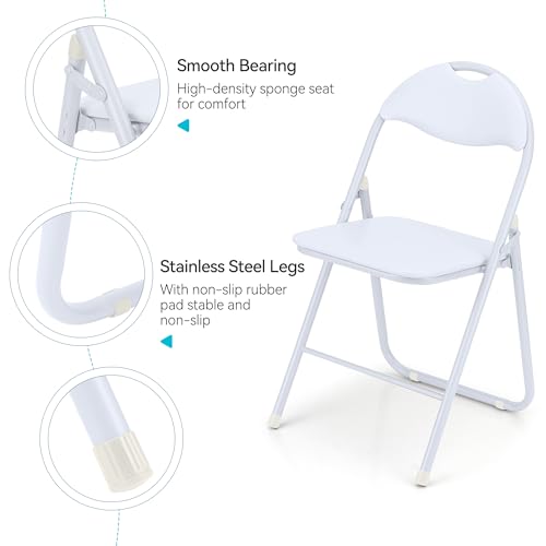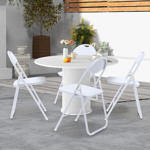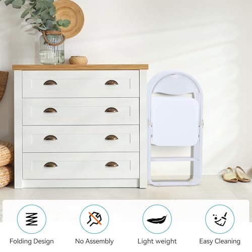 Folding Chairs 4 Pack with Cushion, Outdoor & Indoor Event Portable Metal Folding Chairs with Non-Slip Feet Pads Stackable Chairs, Black