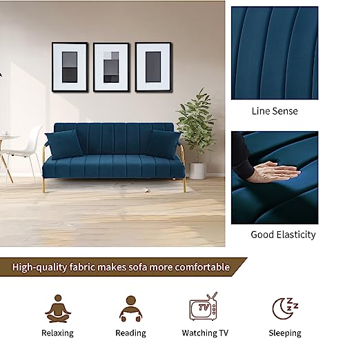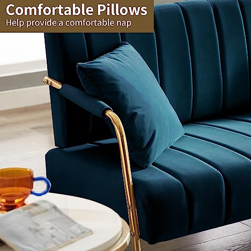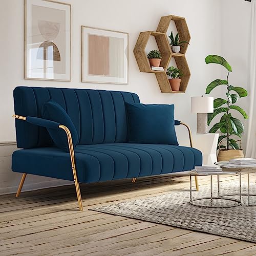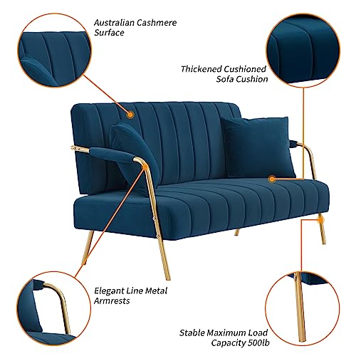 Loveseat Sofa Couchs, 61 Inch Upholstered Velvet Modern 2 Seater Couch for Small Space, Comfy Futon Sofa Furniture with Golden Metal Legs for Bedroom, Apartments (Beige)