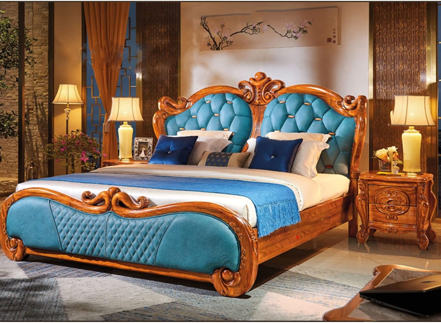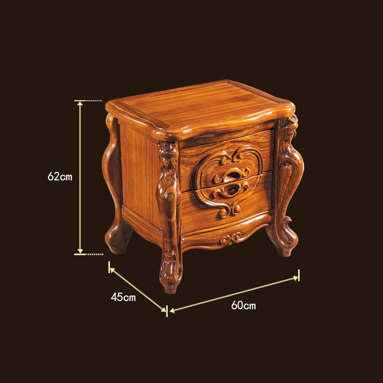 Luxury High-end Nightstand, Exquisite Carving Bedside Tables, Solid Wood Nightstands with 2 Drawer, Rectangle Storage Cabinet Furniture for Villa Big House Bedroom