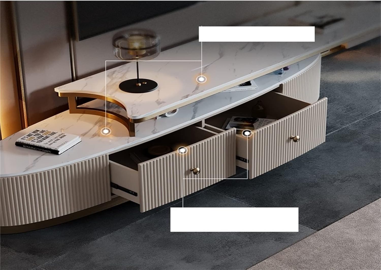 Tv Cabinet Luxury Rock Panel TV Cabinet Tea Table Combination High End Storage Minimalist Retractable TV Cabinet