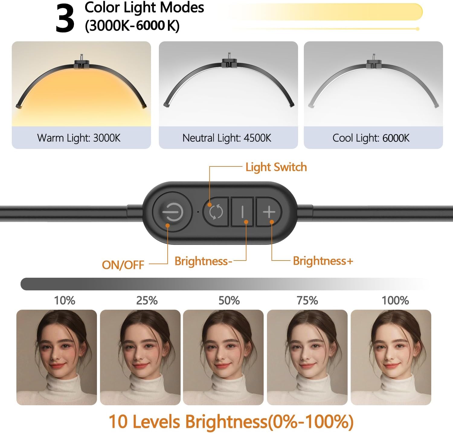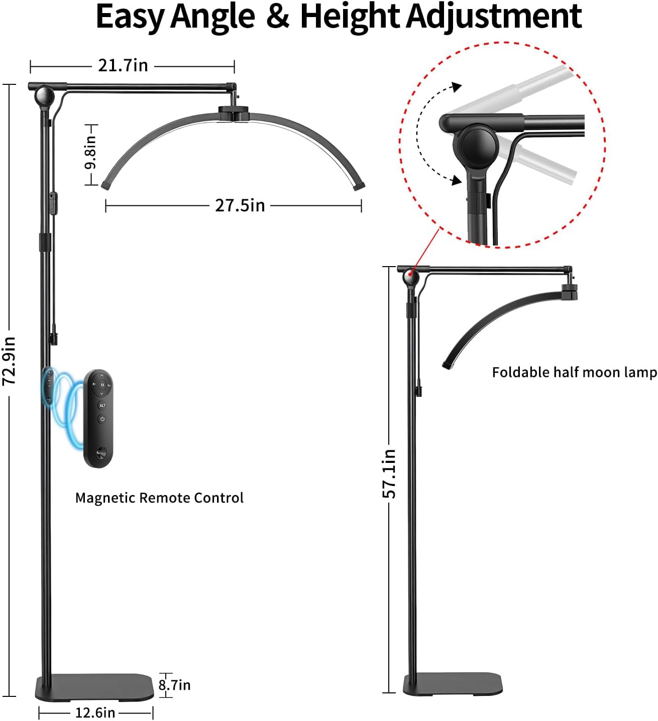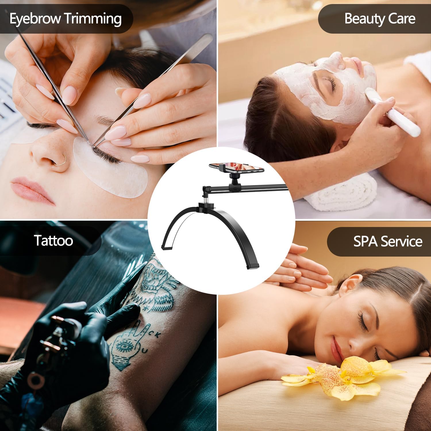 yAyusi Lash Light for Eyelash Tech, Foldable Floor Lash Lamp for Eyelash Extensions, LED Half Moon Light Lash Tech with Phone Holder, Dimmable Esthetician Light for Eyelash/Skincare/Tattoo