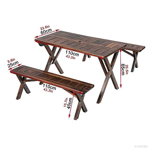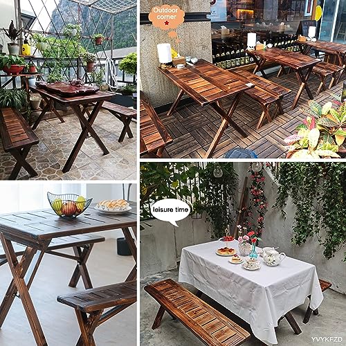 Indoor/Outdoor Folding Garden Bench, Weather-Resistant Backless Patio Bench Seat, Traditional Wooden Leisure Park Bench Chair, Rustic Country Decor for Porch, Lawn (Color : Table and Stool se