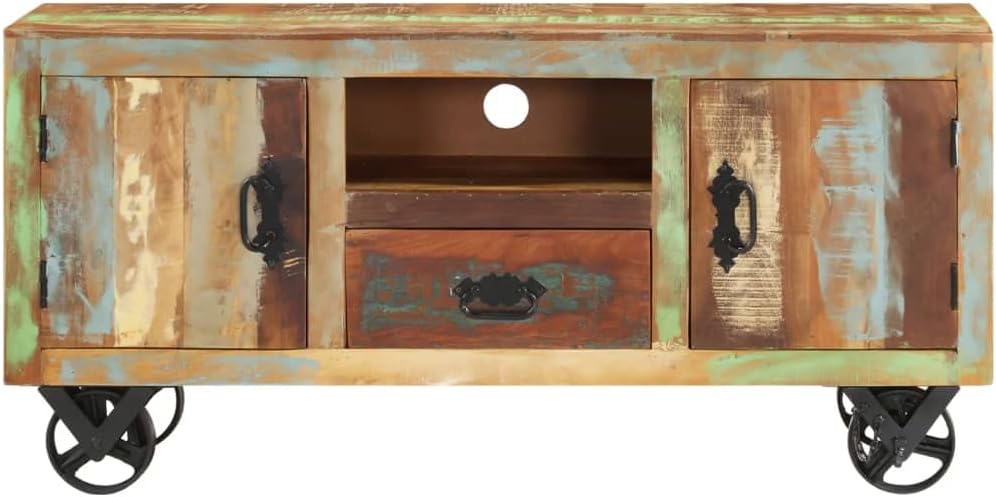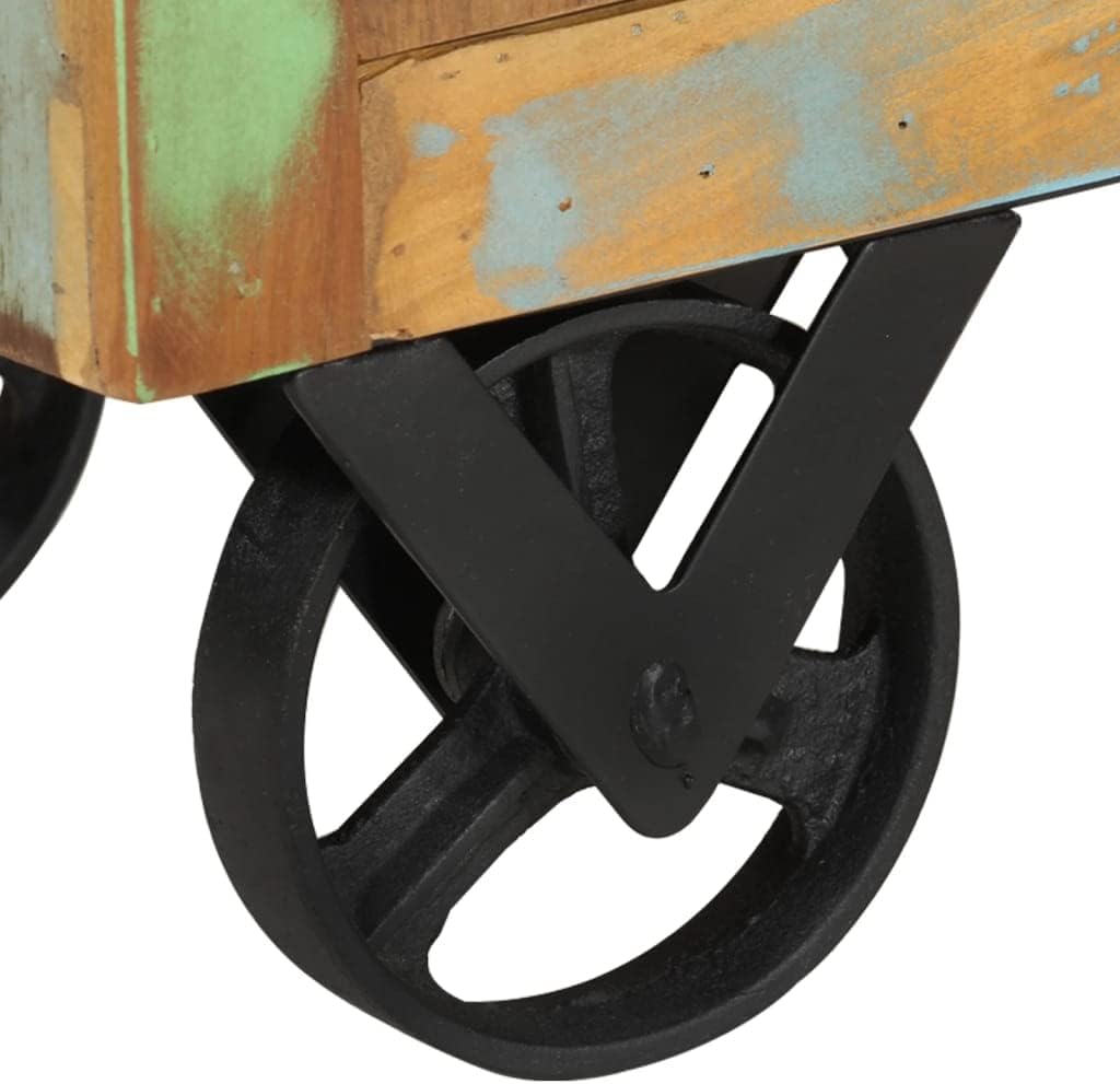 TV Cabinet,Drawer Cabinet,Side Cabinet, Office Cabinet,Living Room Cabinet,with Steel Handles and 4 Cast Iron Wheels,for Living room, Bedroom,Activity room,43.3"x11.8"x20.9" Solid Reclaimed Wood