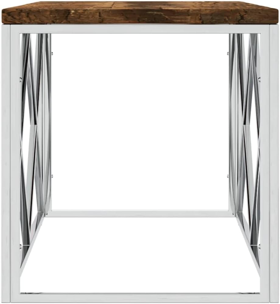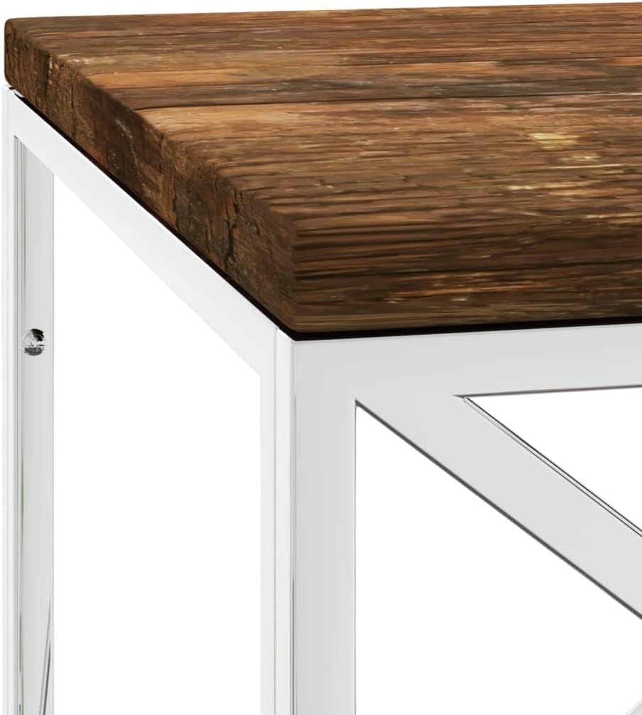 Coffee Table Stainless Steel and Solid Wood Reclaimed